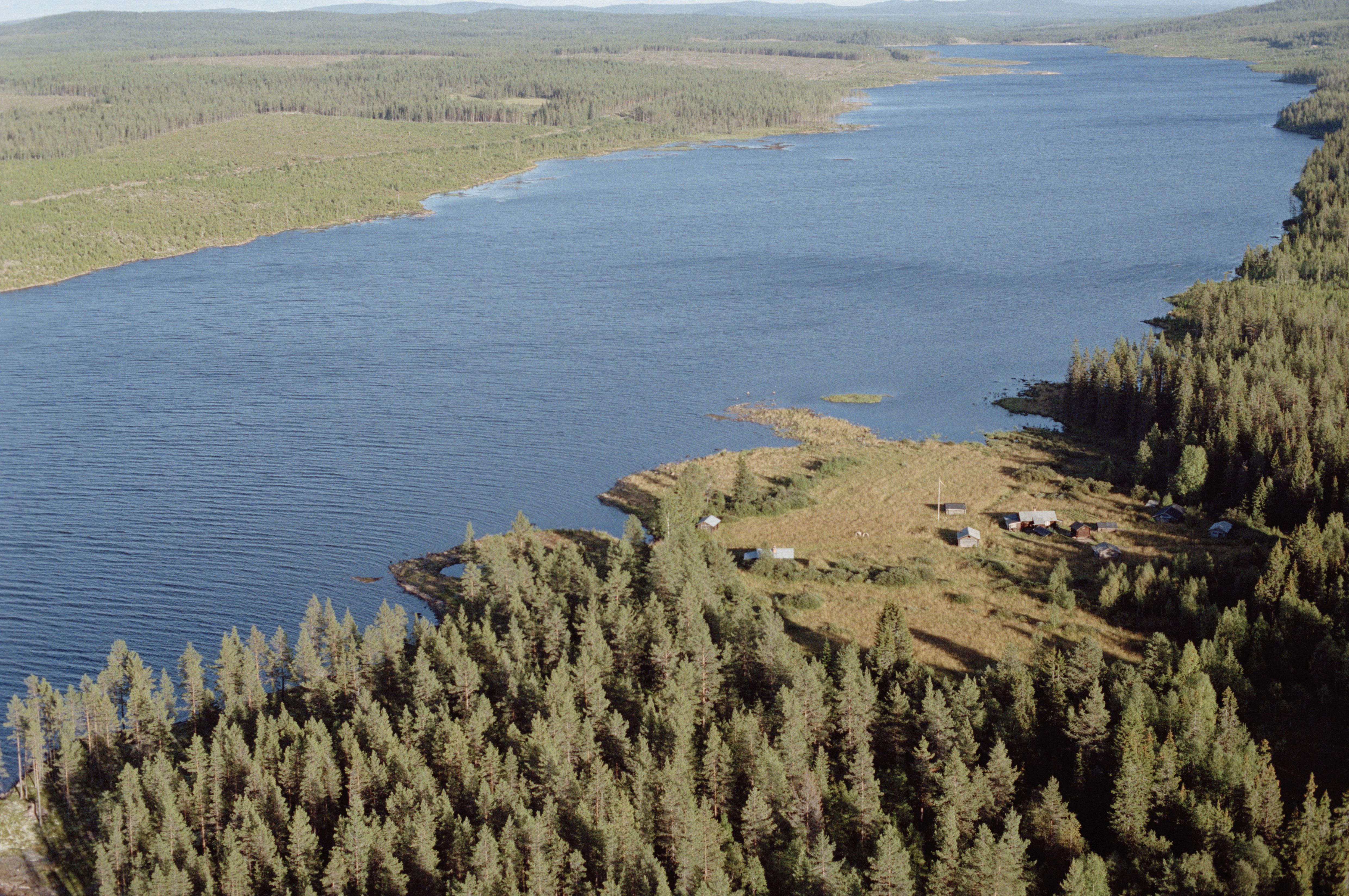 Beskrivning: Smedjemorasjön. Under bildens mitt Strömvallens by. I skogen nere till vänster fornlämningsplatsen RAÄnr Lillhärdal 132:1. Bilden är tagen mot (väderstreck): OSO