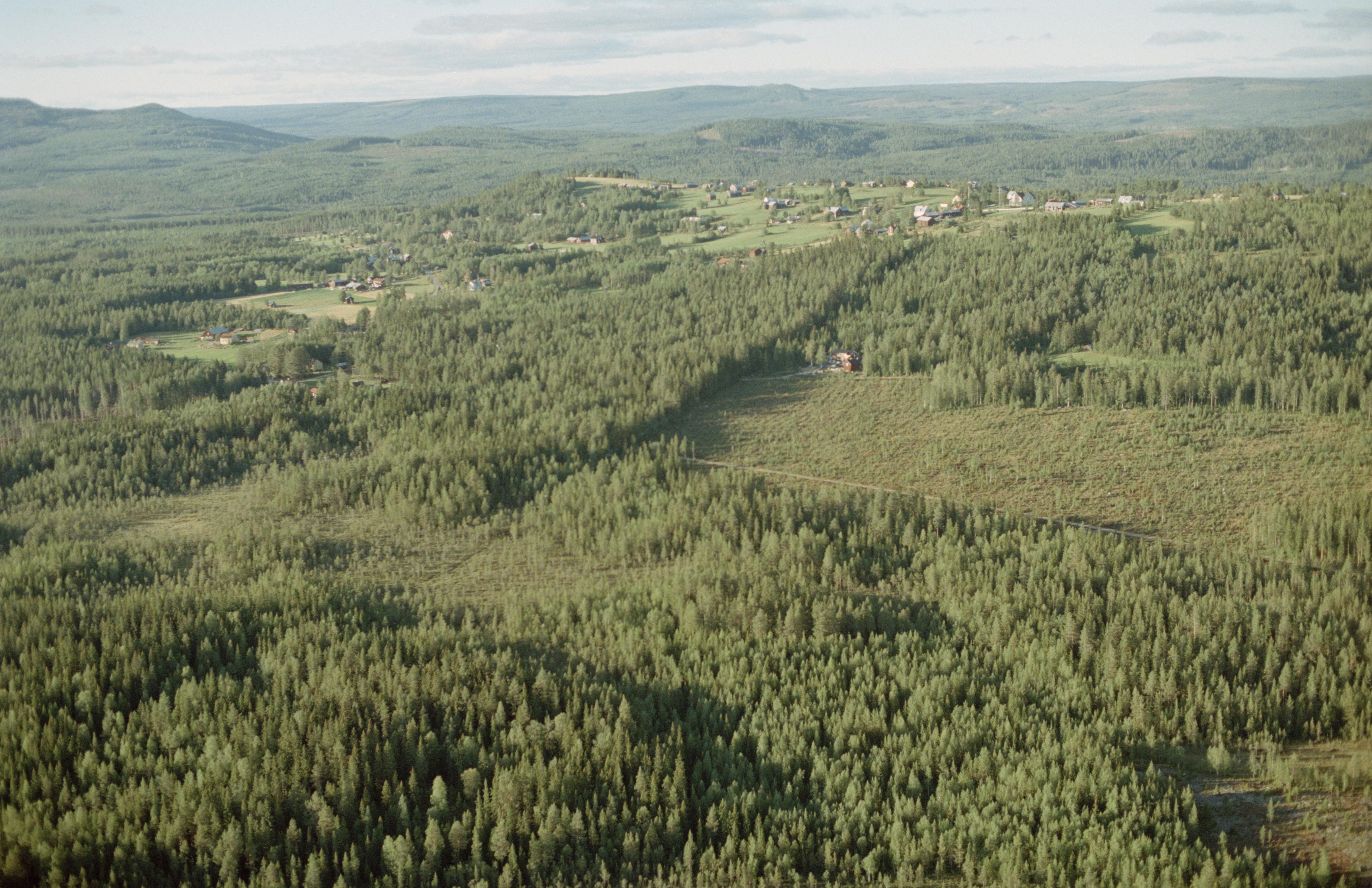 Beskrivning: I bildens övre del Ytterberg by och berg. I byn bytomt RAÄnr Sveg 1400, 1406, 1415, 1419, m.fl. Bilden är tagen mot (väderstreck): N
