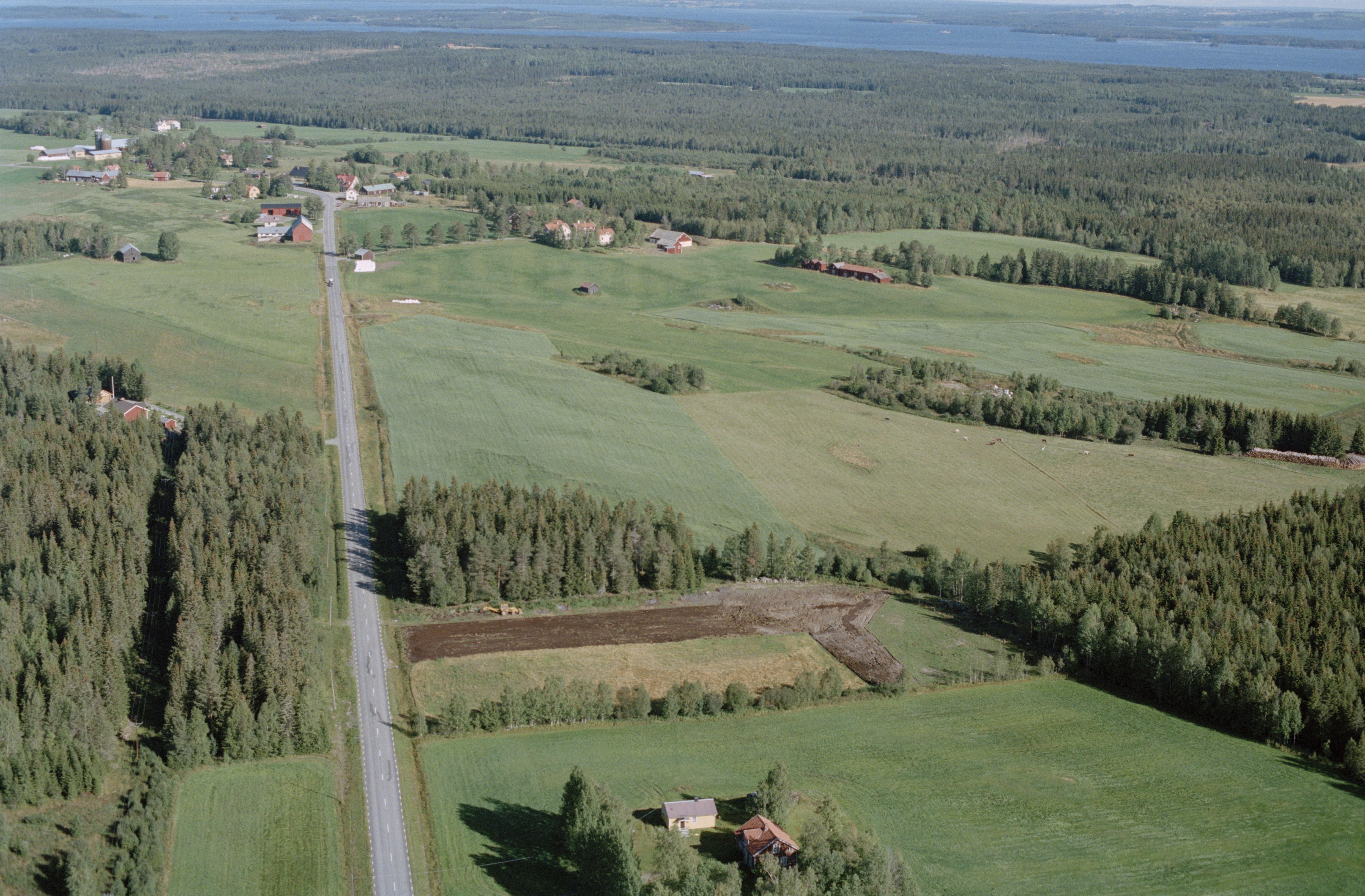 Beskrivning: Området Småängesåsen till vänster om bildens mitt. Mansgården i Marby by till vänster i bildens övre del. Vid gården bytomter RAÄnr Marby 192, 197 m.fl vid fossil åker Marby 82:1 m.m. Bilden är tagen mot (väderstreck): NNV
