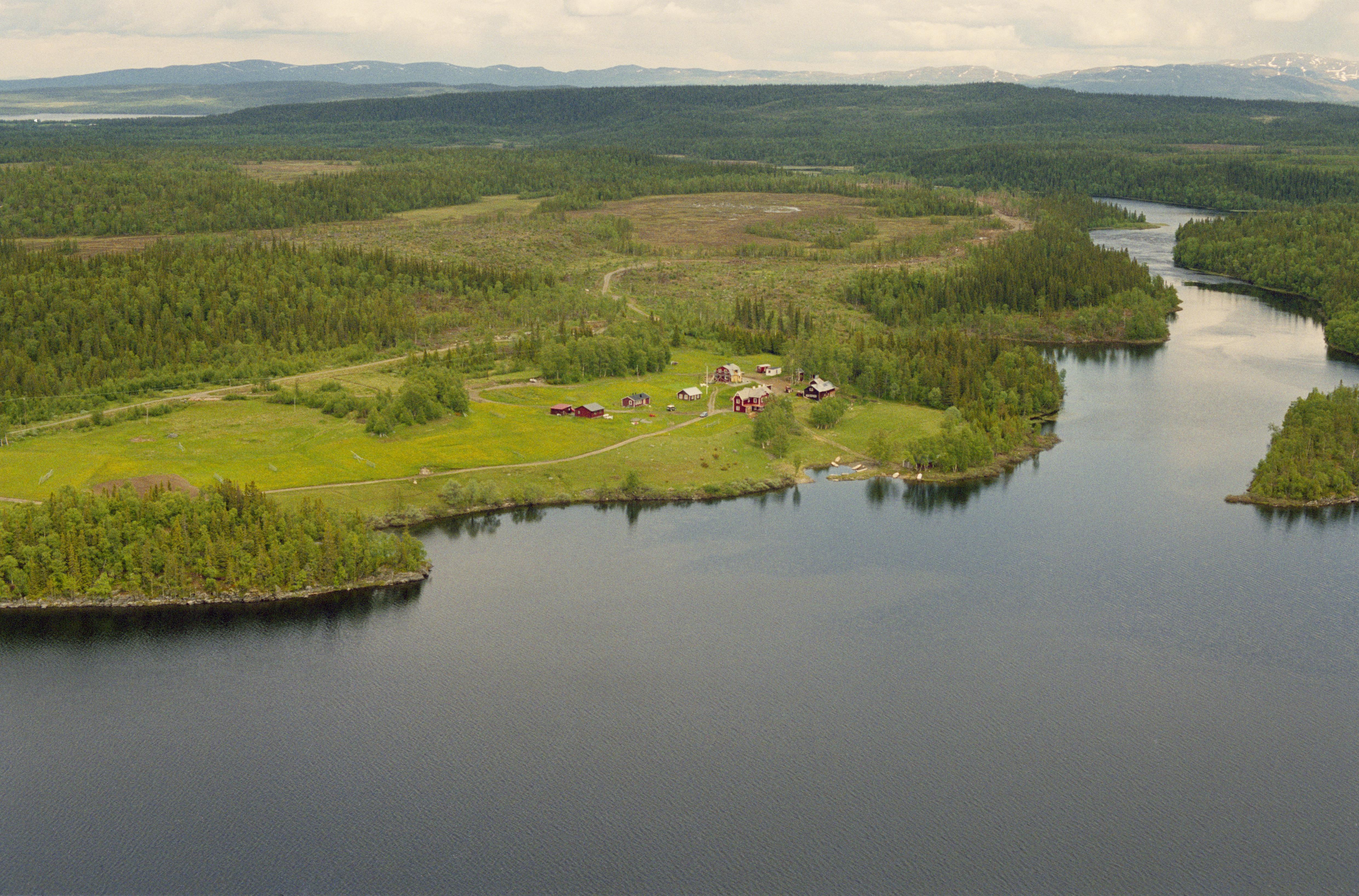 Beskrivning: Ånnsjön, norra delen. Indalsälven uppe till höger. Landverks by vid bildens mitt med bytomt och fossil åker RAÄnr Åre 151:1-2. Vid stranden till vänster boplats RAÄnr Åre 5:1 och hällristningar Åre 1:1-2. Bilden är tagen mot (väderstreck): NO