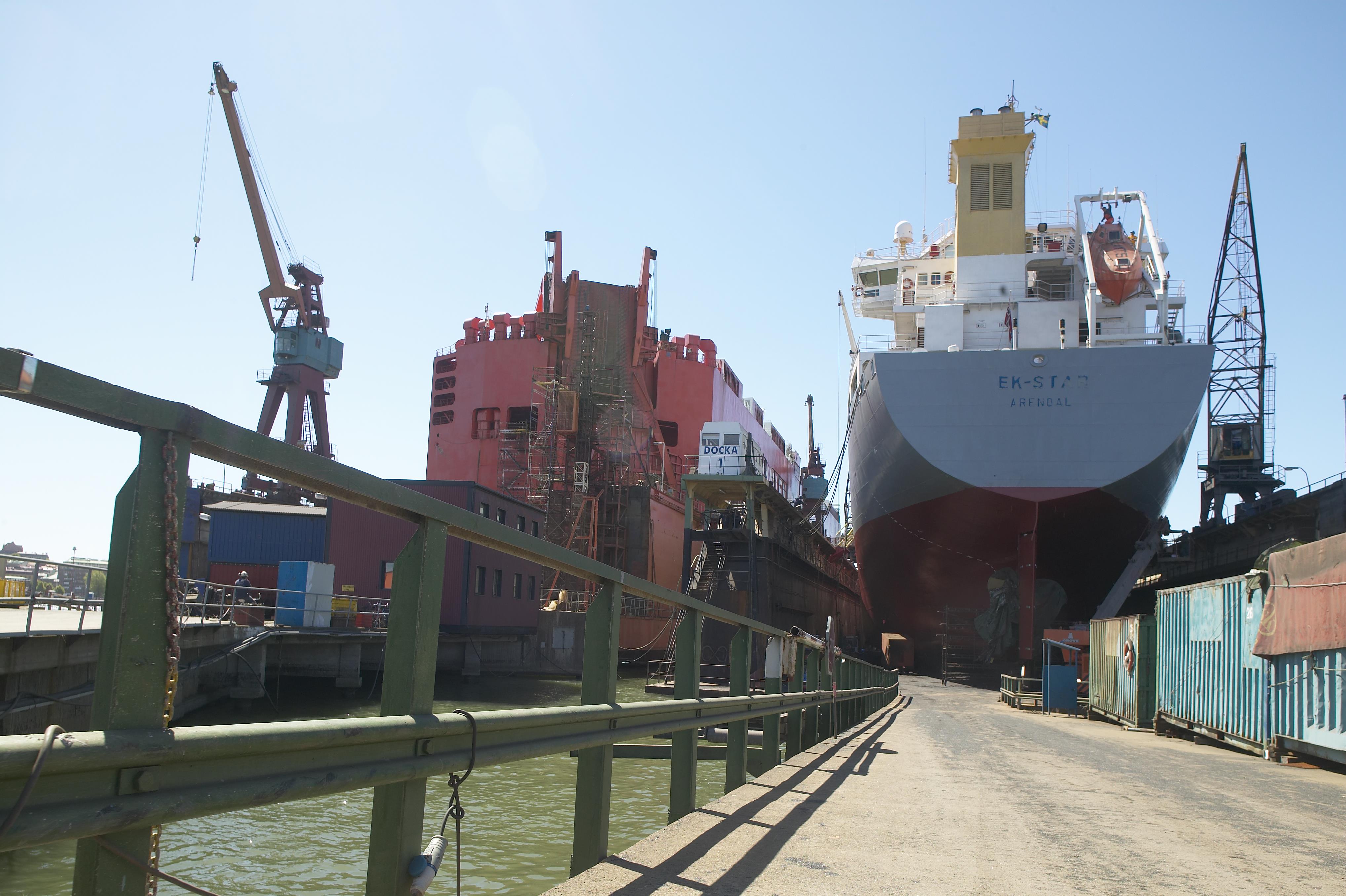 Beskrivning: Landgång till flytdocka, Götaverken Cityvarvet AB.