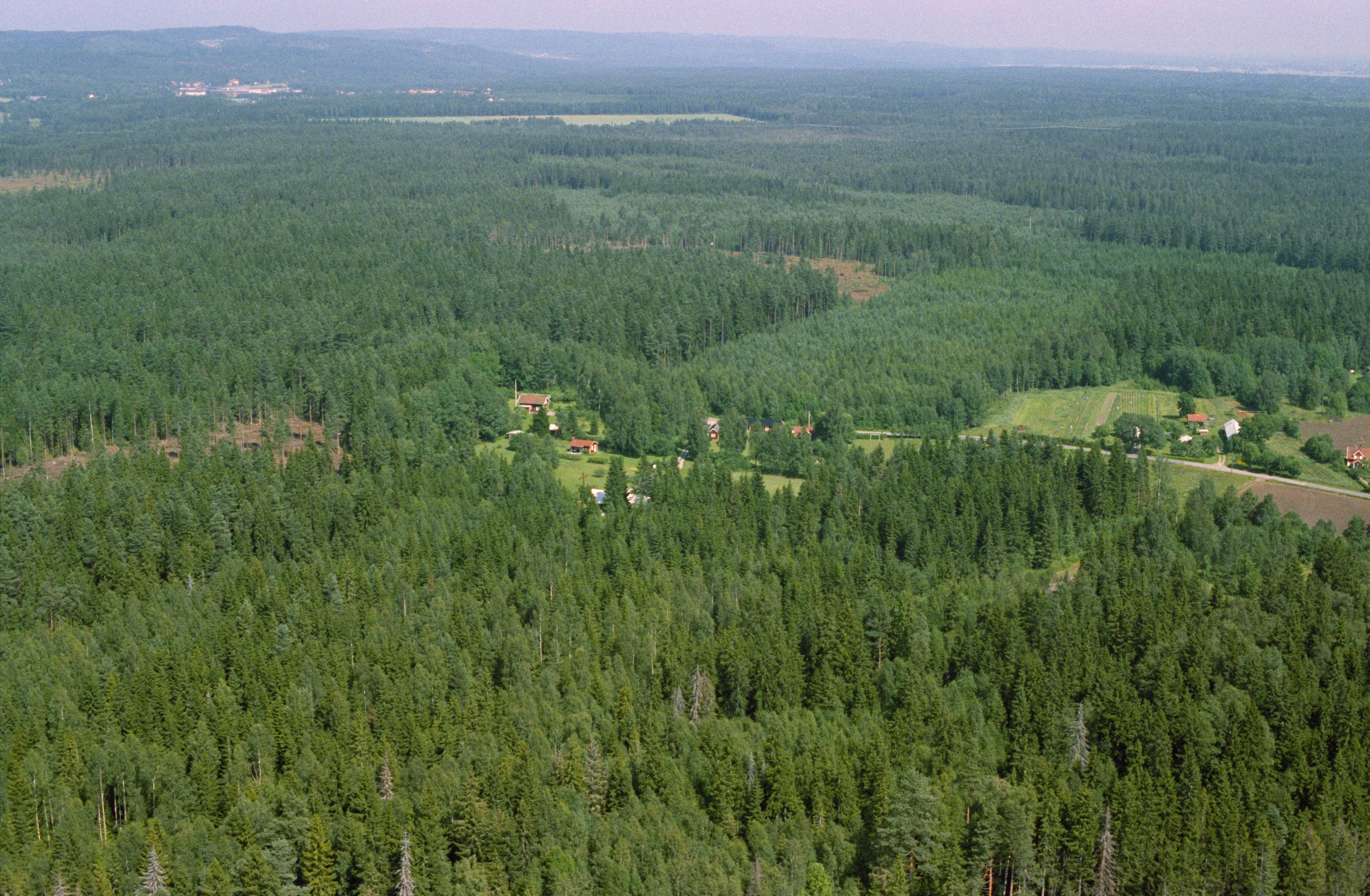 Beskrivning: Granalunds by vid gränsen mot Tysslinge socken (i bildens övre del). Bilden är tagen mot (väderstreck): NNO