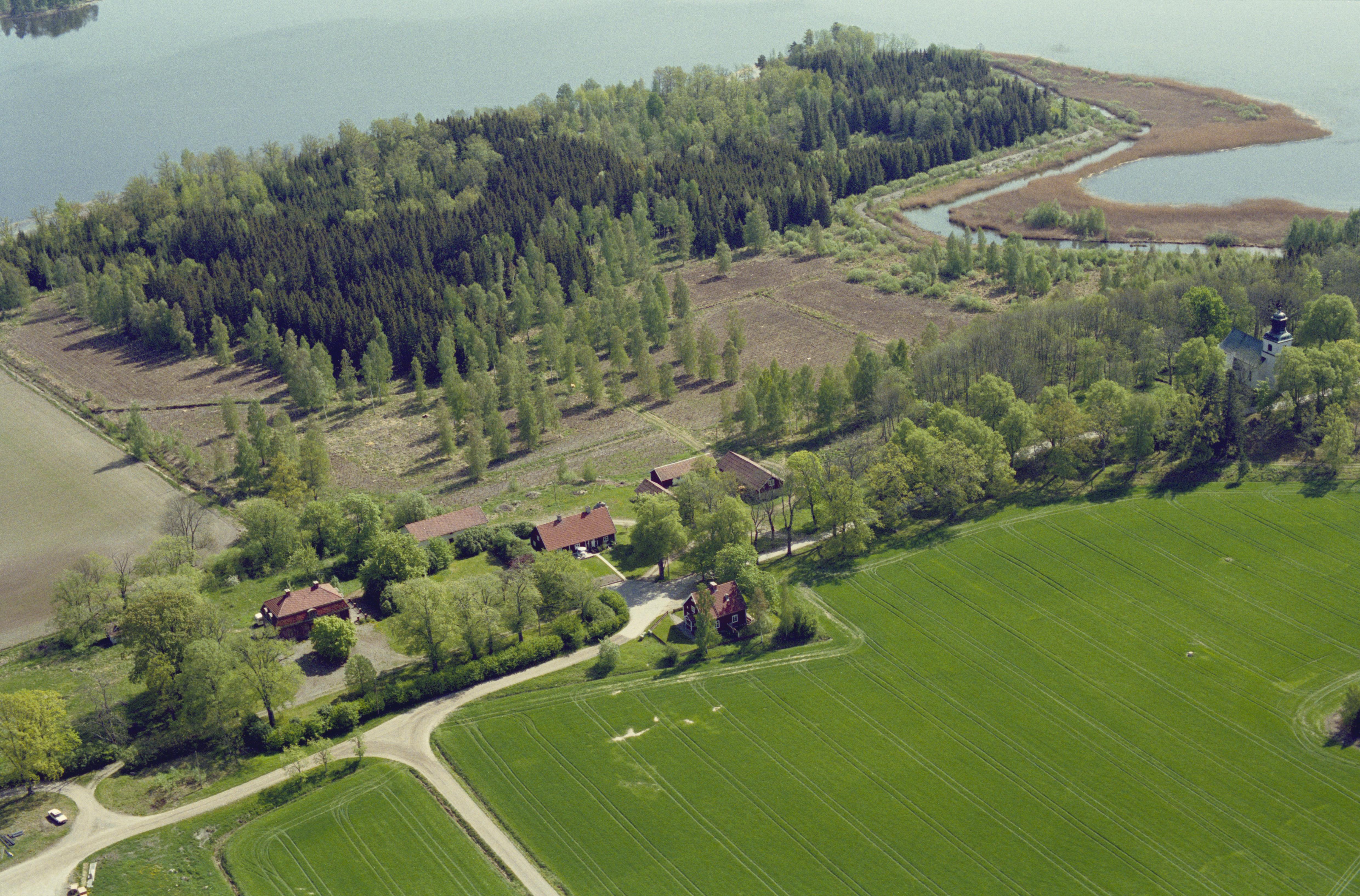 Beskrivning: Kägleholms herrgård / säteri och Ödeby kyrka vid sjön Väringen. Bilden är tagen mot (väderstreck): SO
