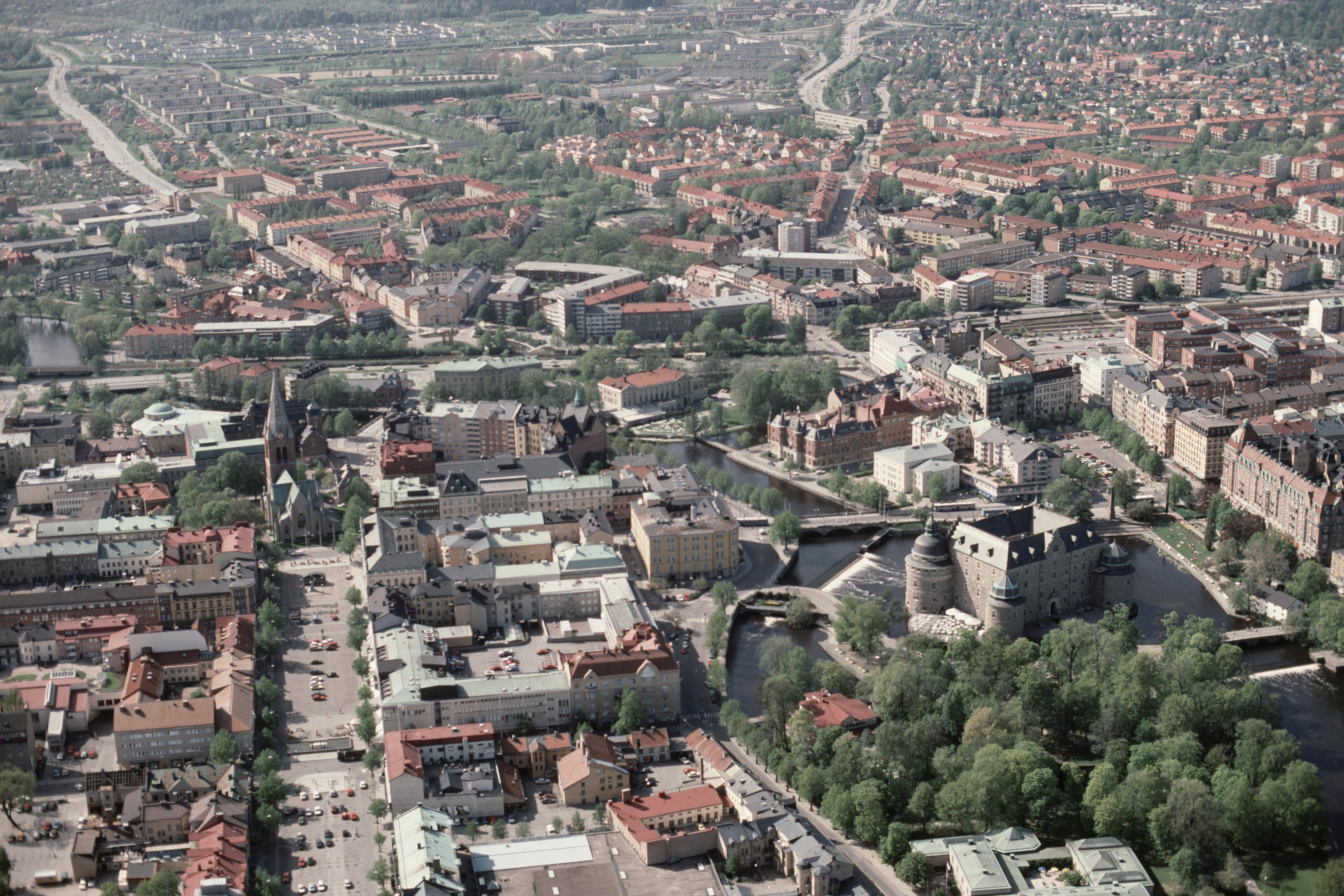 Beskrivning: Anmärkning (övrig): Riksintresse-nr/namn: T20 - Centrala Örebro. Socken: Örebro. Motivering: Residensstad som speglar utvecklingen från medeltida fäste vid mötet mellan viktiga kommunikationsleder till dagens av 1600-talet, 1800-talet senare del och det tidiga 1900-talet präglade stadsmiljö. - Uttryck för riksintresset: Dominerande slottsanläggning i mötet mellan Svartåns vattenled och den nord-sydliga åsvägen. Stadsplan med enstaka medeltida drag och rätvinklig rutnätsstruktur som grundlades på 1650-talet och fullföljdes på 1850-talet samt utvidgades vid 1900-talets början. Den medeltida Nikolaikyrkan, bebyggelse i den förindustriella tidens lägre skala, mer storstadsmässig stenbebyggelse från tiden kring sekelskiftet 1900 och tiden före andra världskriget. Residensstadens karaktärsbyggnader, parker och grönstråk. [Texten uppdaterat av Riksantikvarieämbetet våren 2013.] Beskrivning: Svartån i Örebro stad. Sankt Nicolai kyrka till vänster, Örebro slott till höger. Bilden är tagen mot (väderstreck): NV Fotosyfte: Flygbildsdokumentation