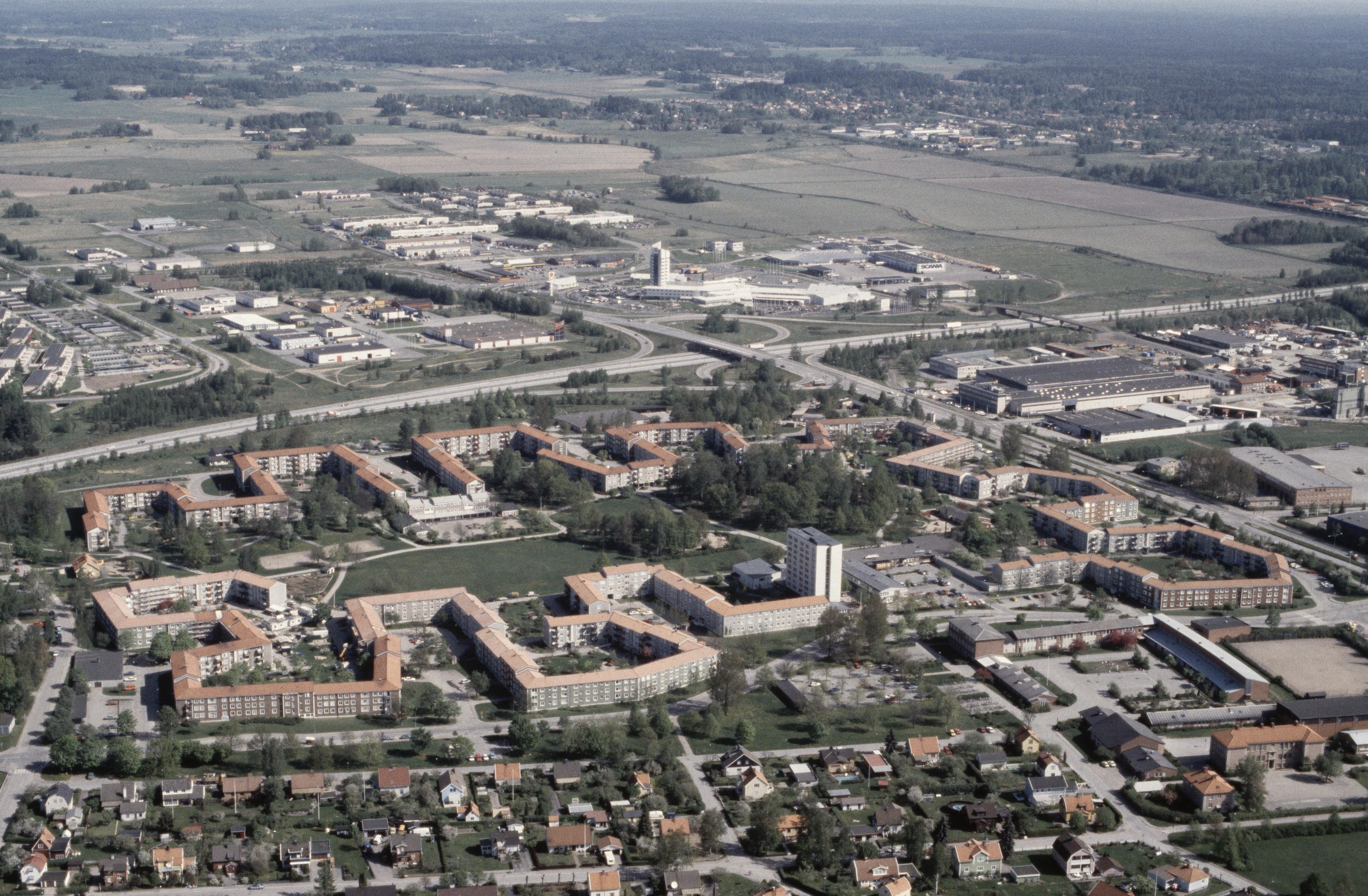 Beskrivning: Örebro stad. Vid bildens mitt bostadsområdet Baronbackarna med gravfält RAÄnr Örebro 48:1. Bilden är tagen mot (väderstreck): NO