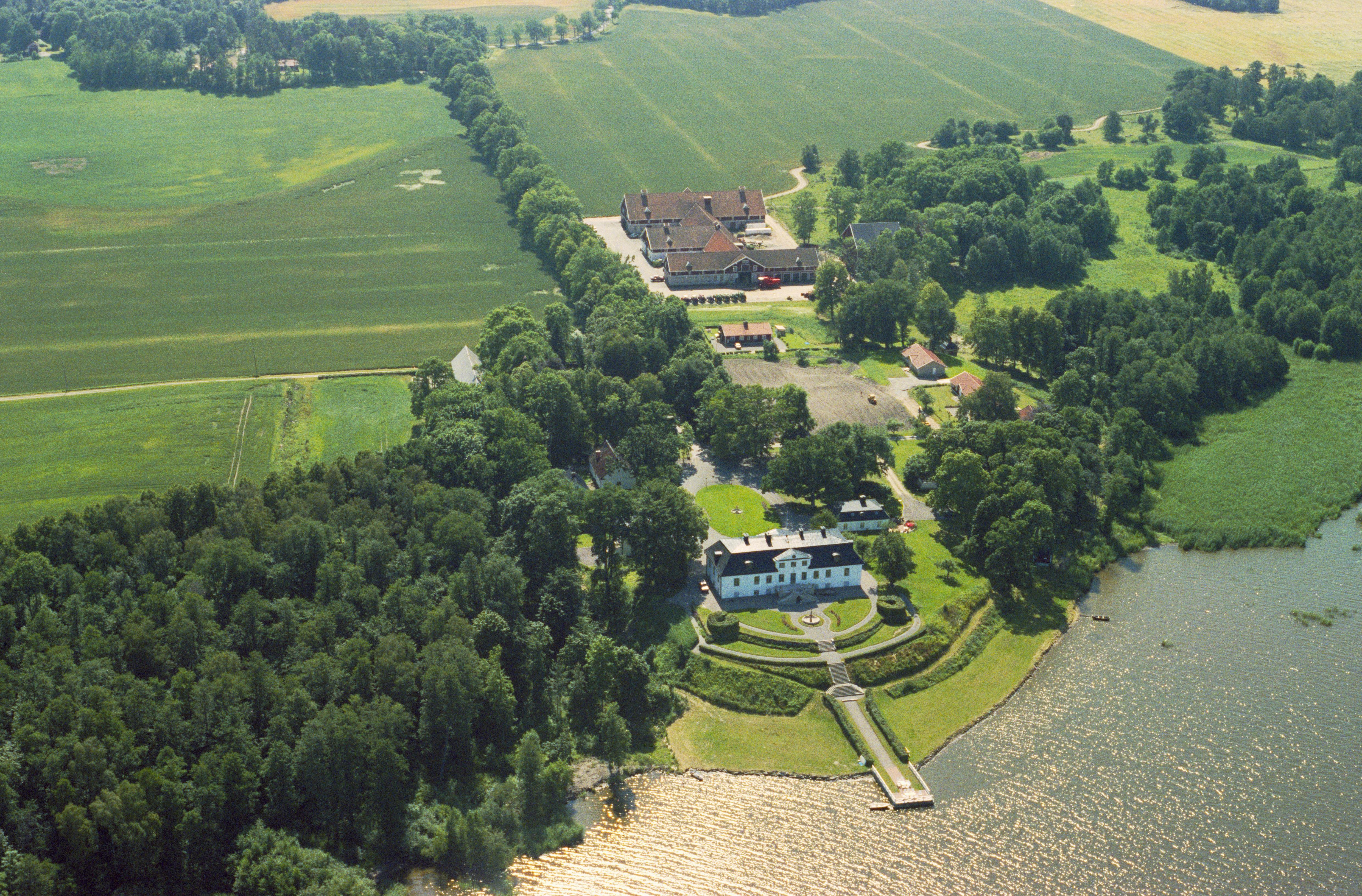 Beskrivning: Hjälmarsbergs herrgård RAÄrn Örebro 68:1 vid sjön Hemfjärden. Bilden är tagen mot (väderstreck): SV