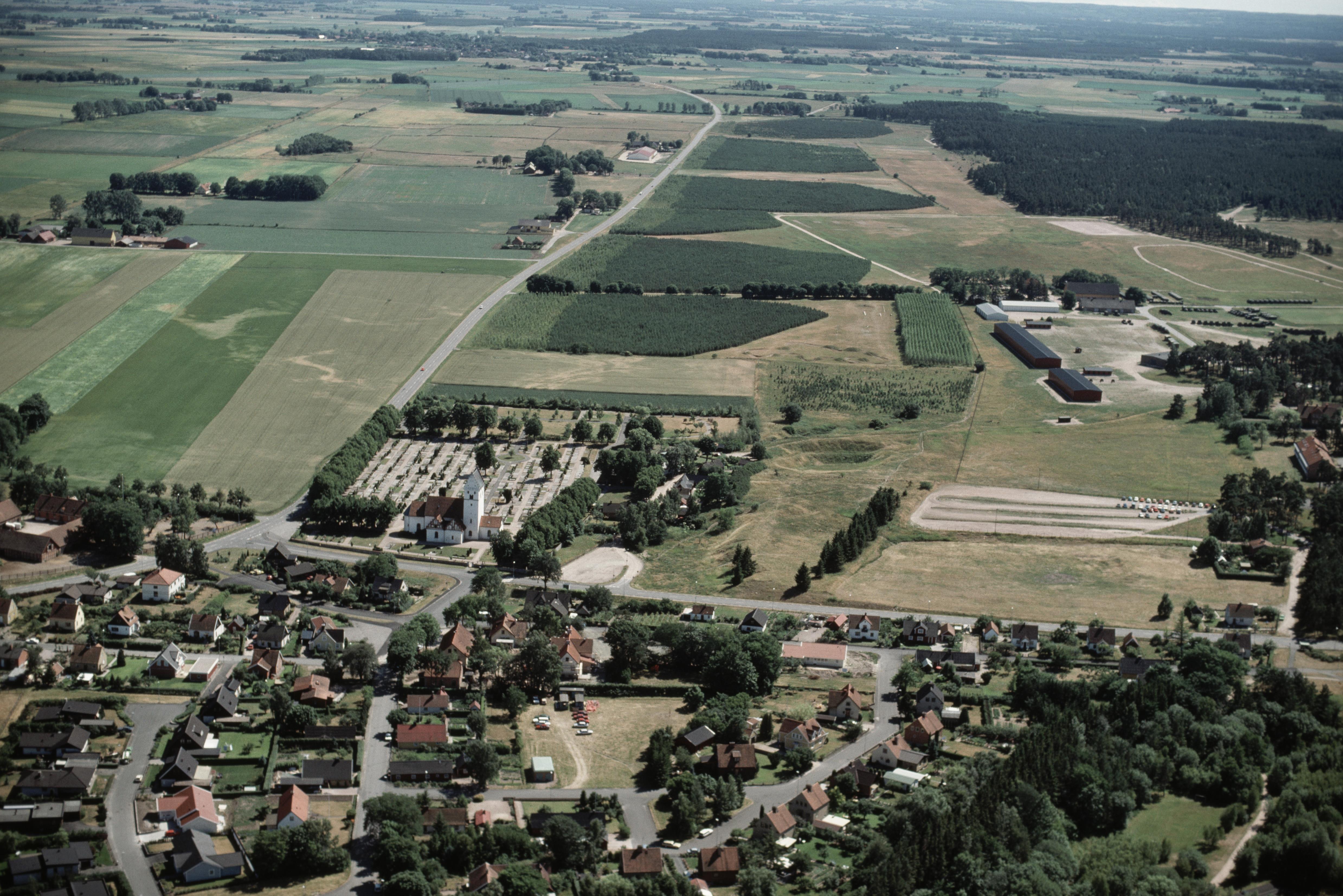 Beskrivning: Norra Åsum kyrka nere till vänster. Bilden är tagen mot (väderstreck): S