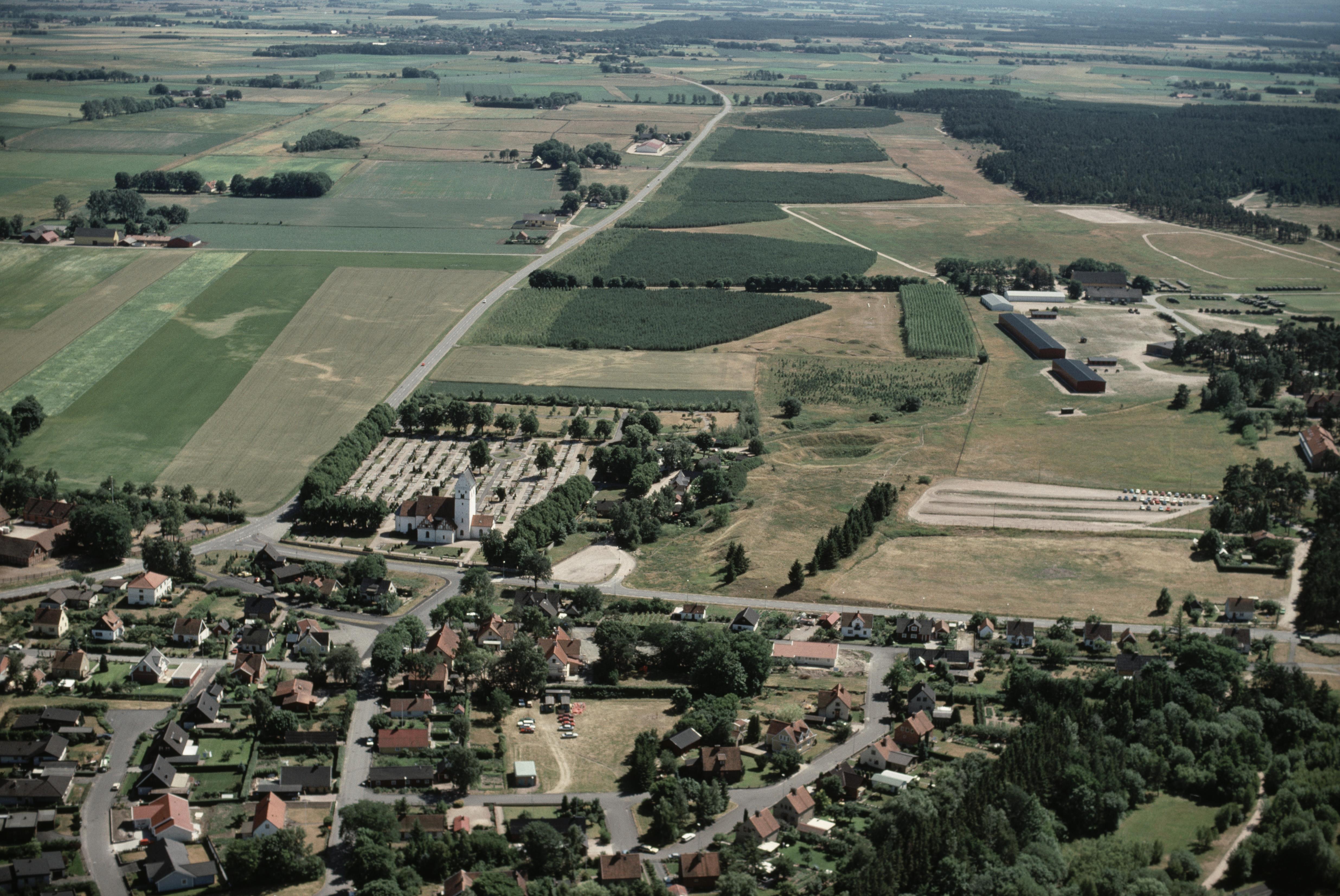 Beskrivning: Norra Åsum kyrka nere till vänster. Bilden är tagen mot (väderstreck): S
