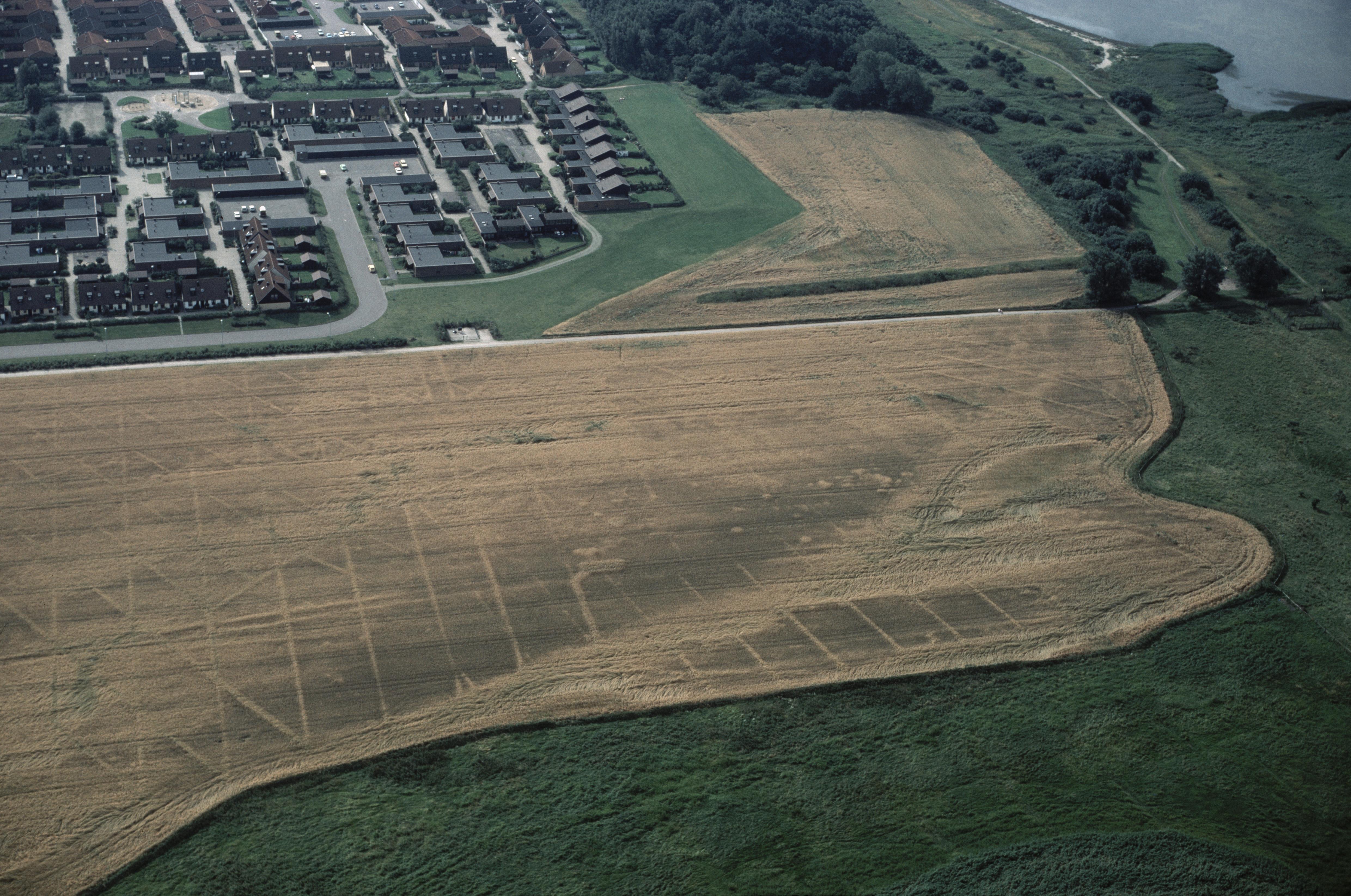 Beskrivning: Cropmarks i åker vid Löddesnäs - Nya Bjärred i tätorten Borgeby. Boplats RAÄnr Borgeby 25:1. Bilden är tagen mot (väderstreck): S