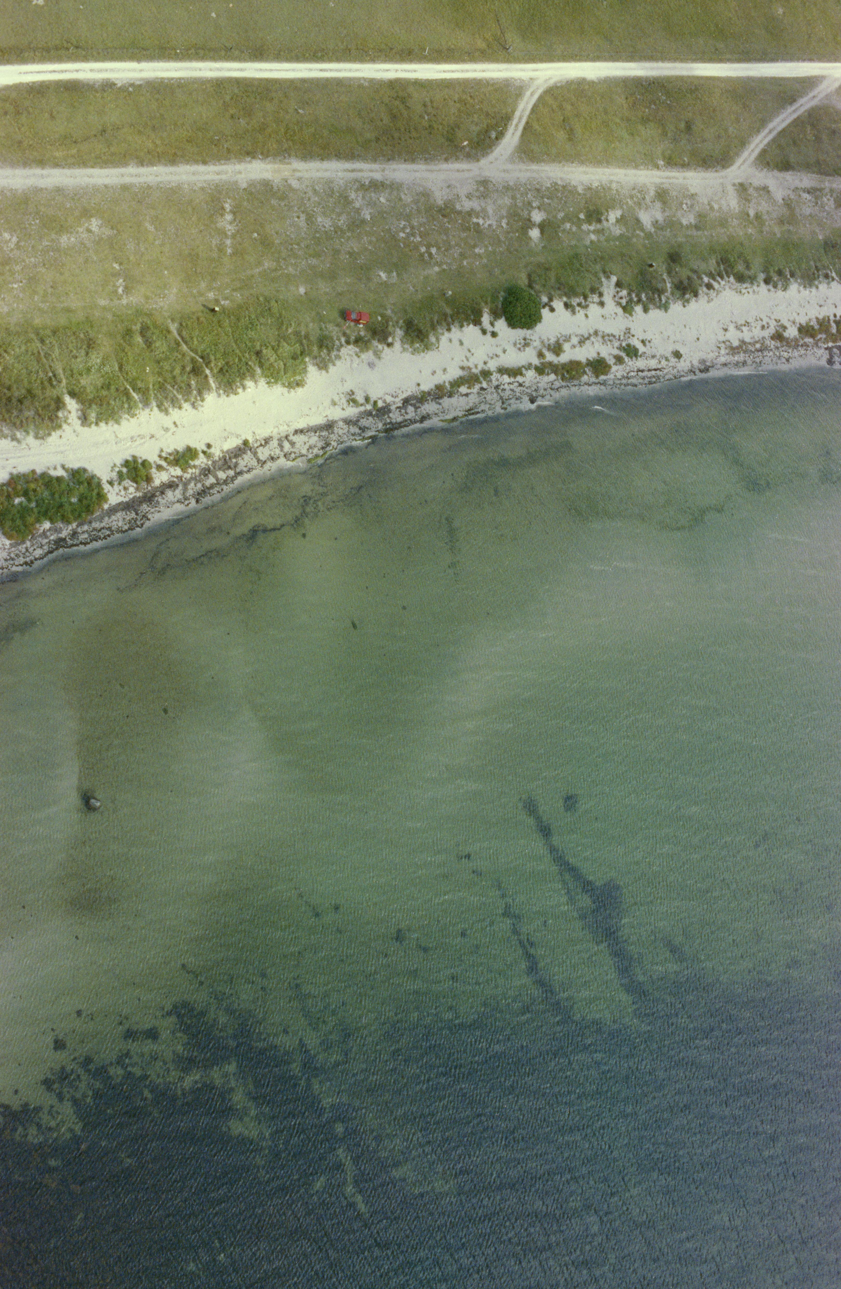 Beskrivning: Skeppsvrak i vattnet vid stranden. Bilden är tagen mot (väderstreck): N