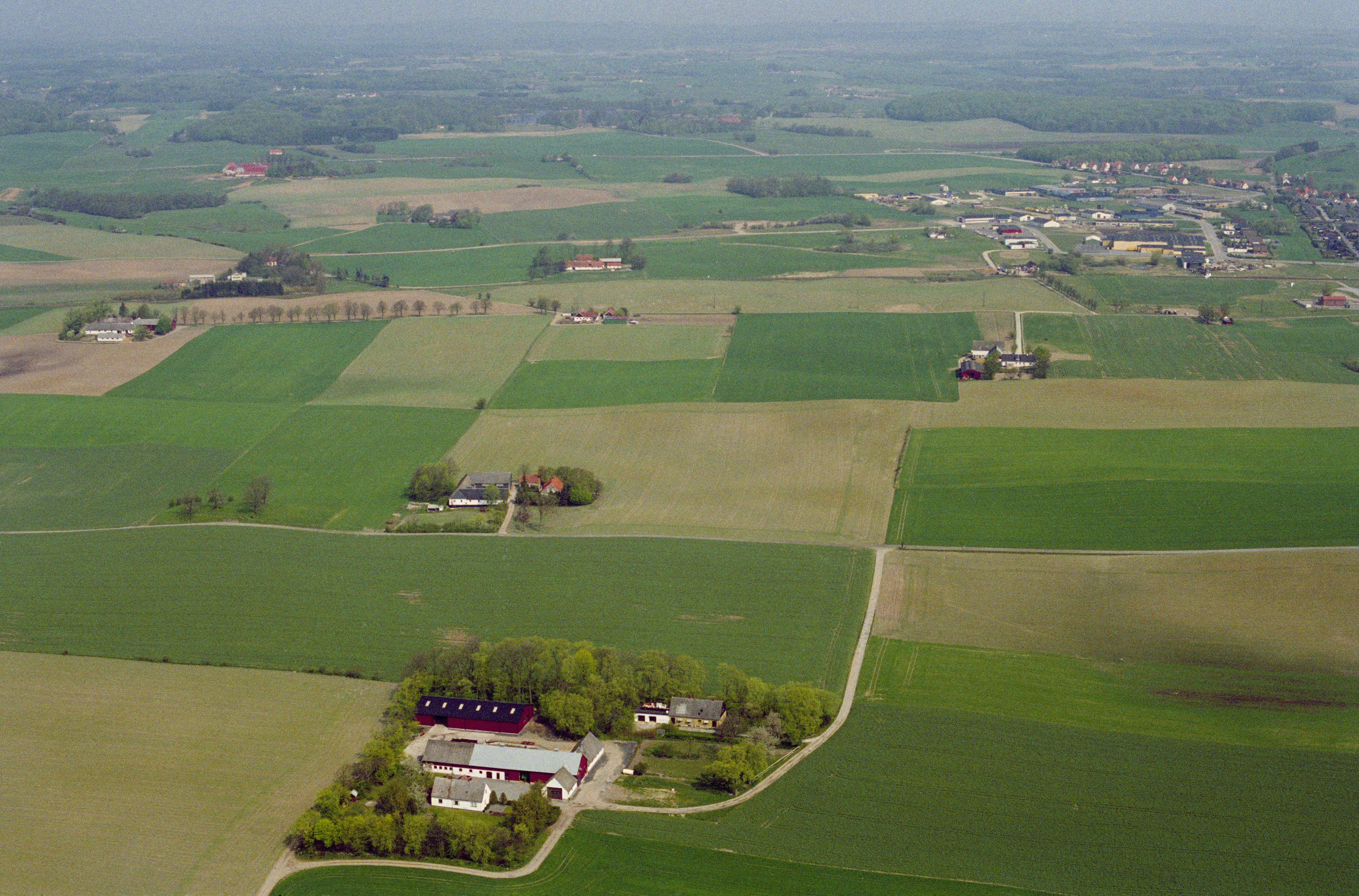 Beskrivning: MacLeans åkrar i området vid Saritslöv. I bildens vänstra del kyrkoruin och ödekyrkogård RAÄnr Skurup 12:1-2. Nere till vänster gården Elinelund. Bilden är tagen mot (väderstreck): N
