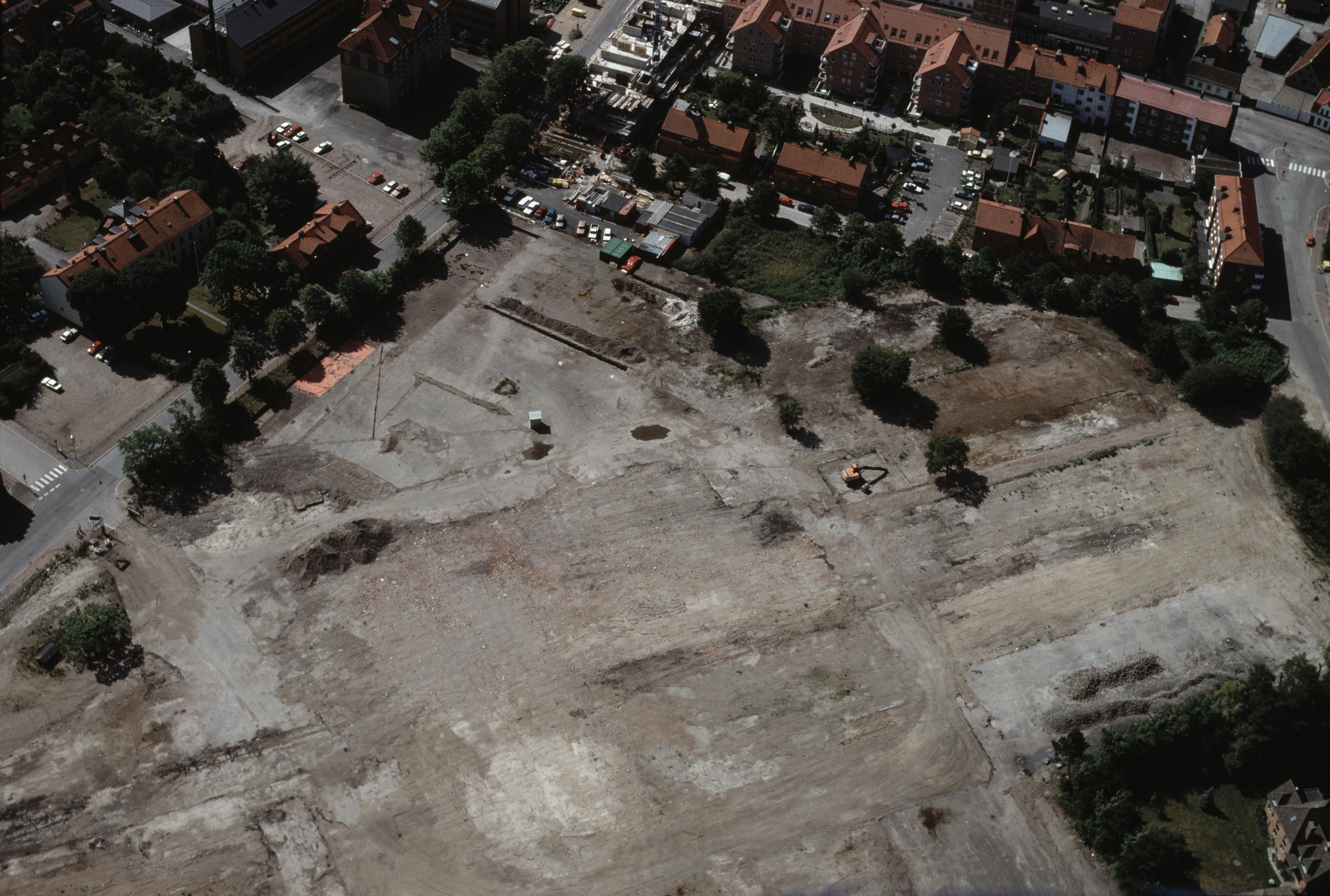 Beskrivning: Trelleborgs stad. Arkeologisk undersökning av fornborg "Trelleborgen" RAÄnr Trelleborg 48. Bilden är tagen mot (väderstreck): S
