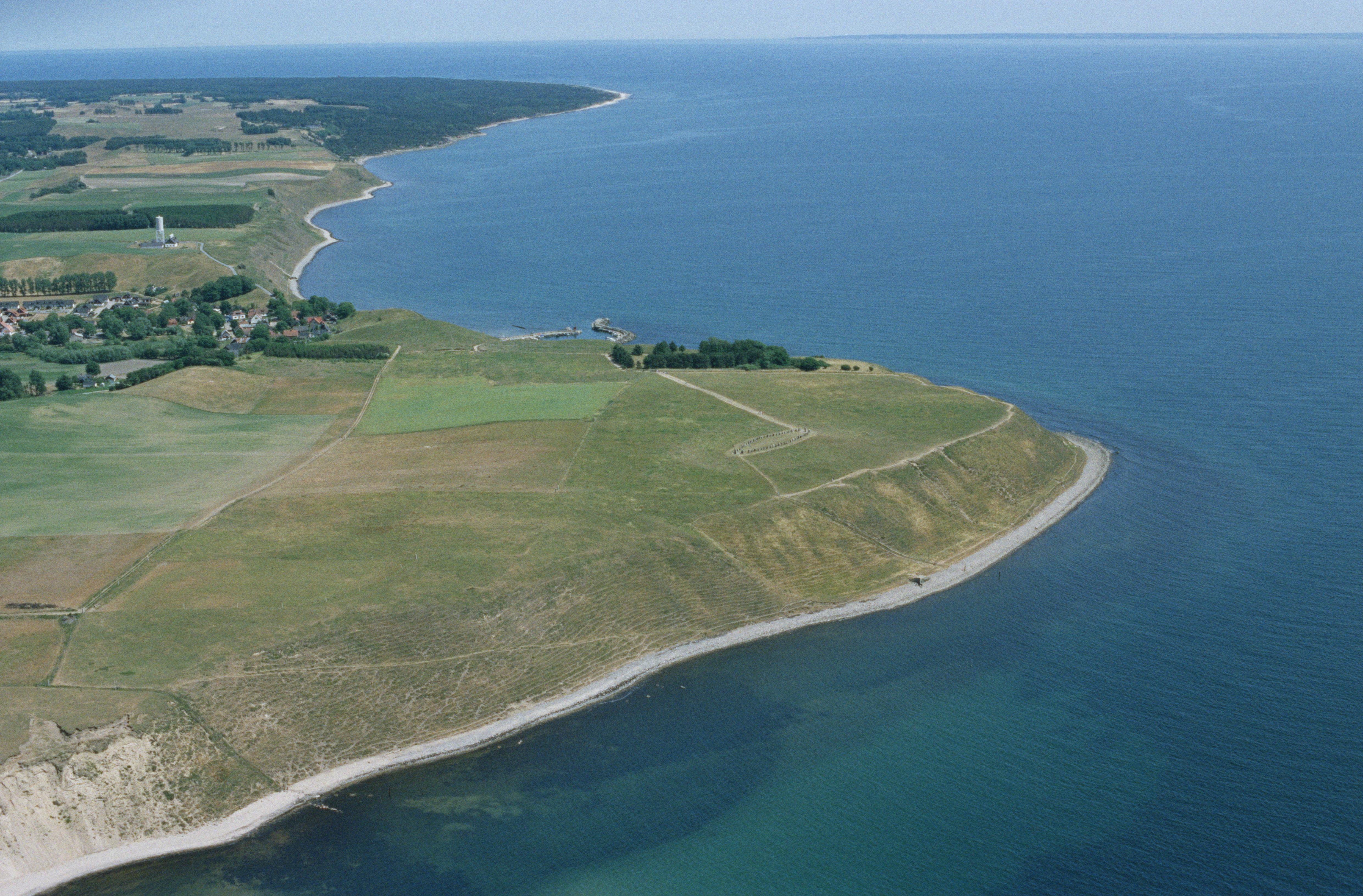 Beskrivning: Till höger om bildens mitt skeppssättningen Ales stenar RAÄnr Valleberga 20:1 vid Kåseberga. Bilden är tagen mot (väderstreck): Ö