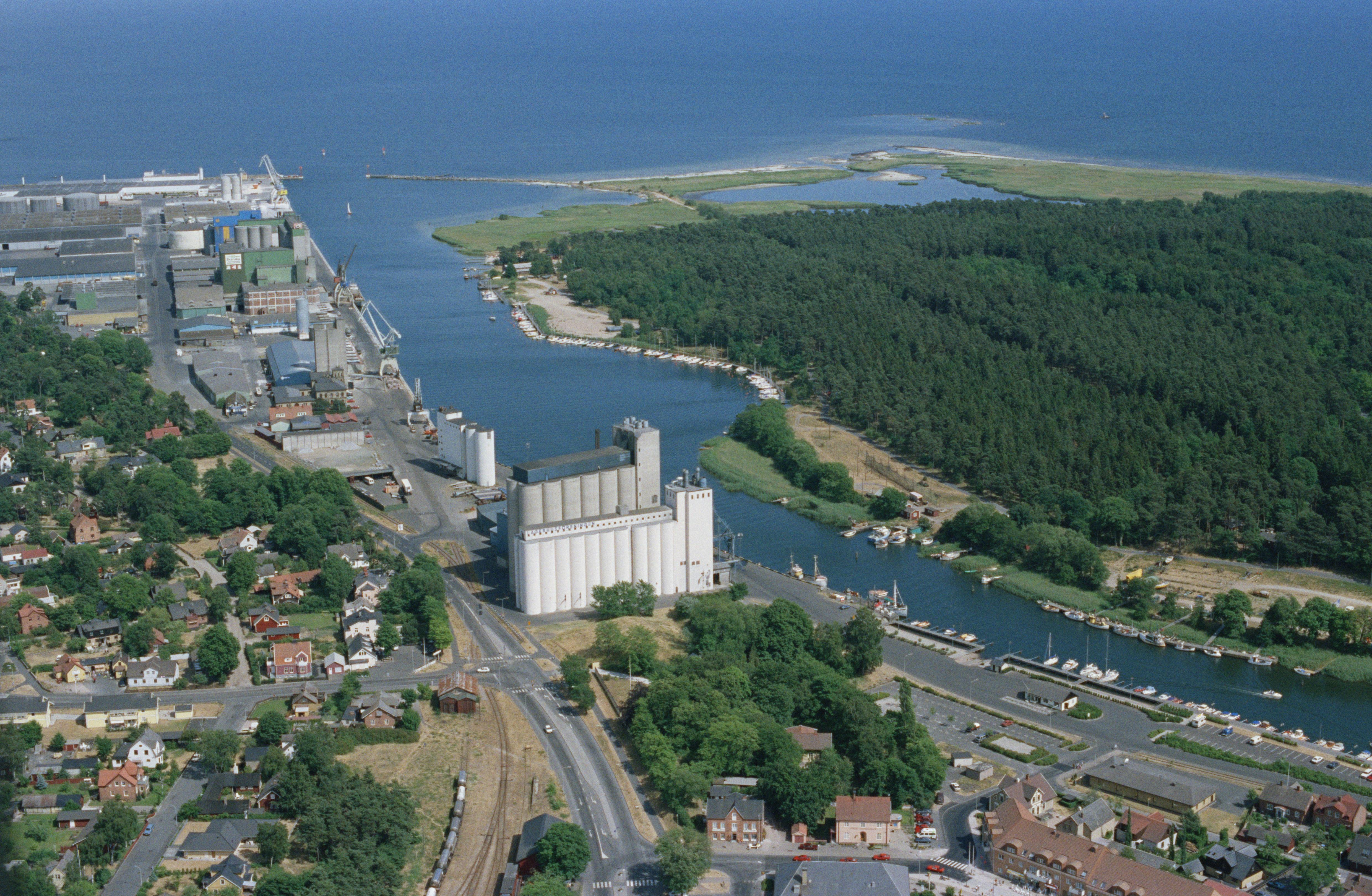 Beskrivning: Helge å?s mynning vid staden Åhus i Hanöbukten. Bilden är tagen mot (väderstreck): Ö