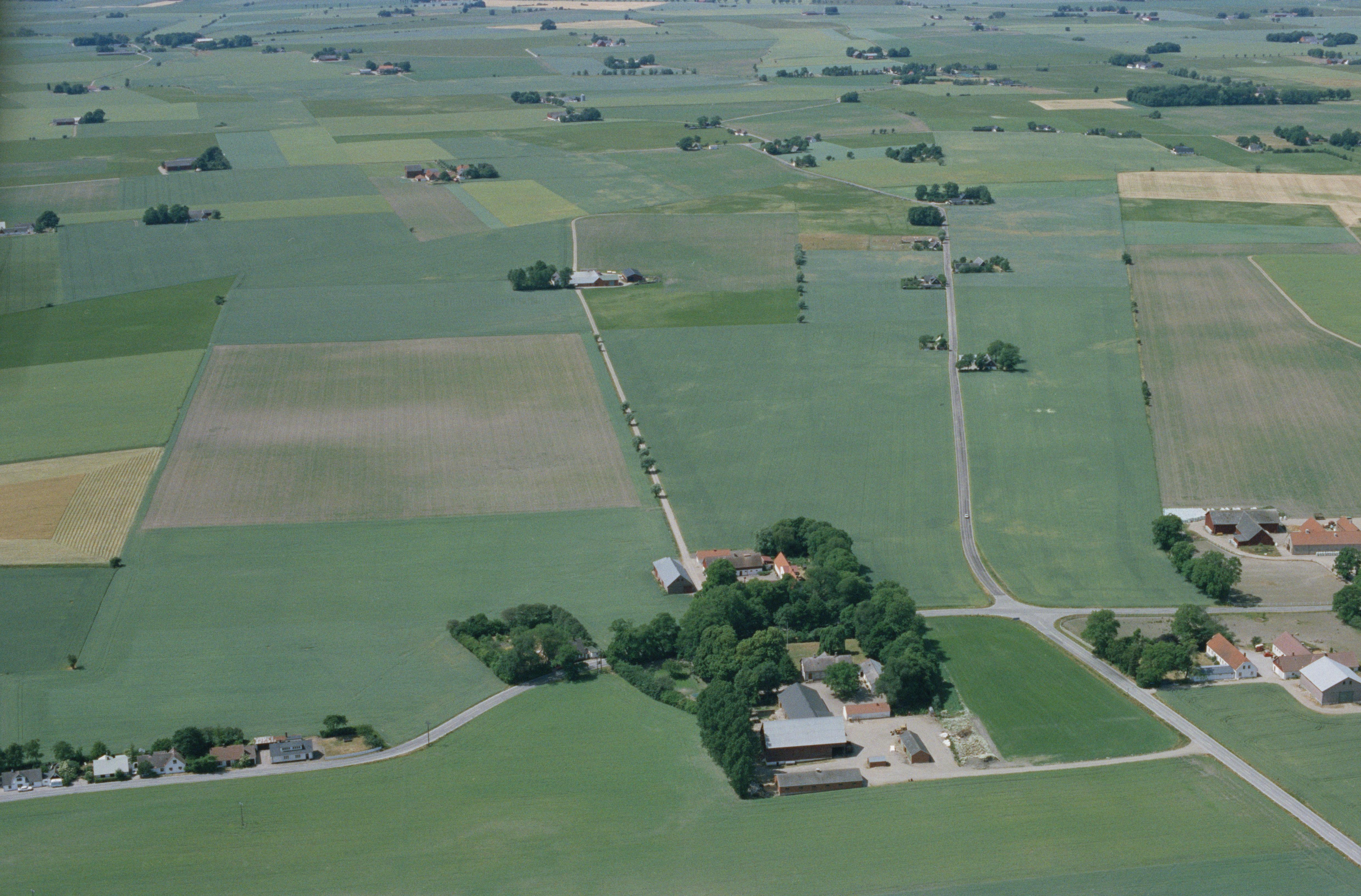 Beskrivning: Brönnestads by. Nere till höger Brönnestadsgården i bytomt RAÄnr Östra Klagstorp 27:1. Bilden är tagen mot (väderstreck): V