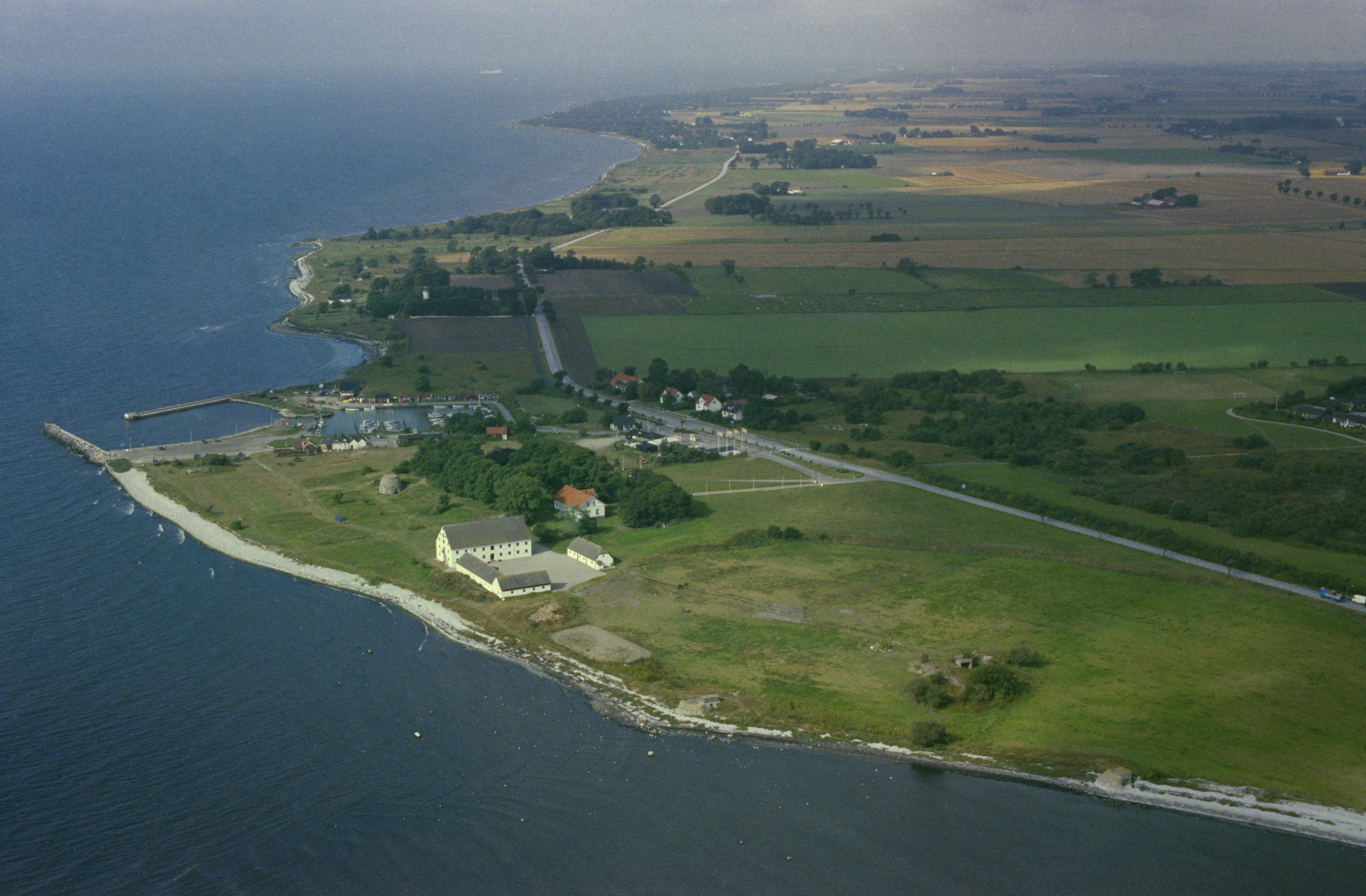 Beskrivning: Kalkutskeppningshamn med Köpmansmagasin RAÄnr Östra Torp 28:1 från 1800-talets början. Bilden är tagen mot (väderstreck): V