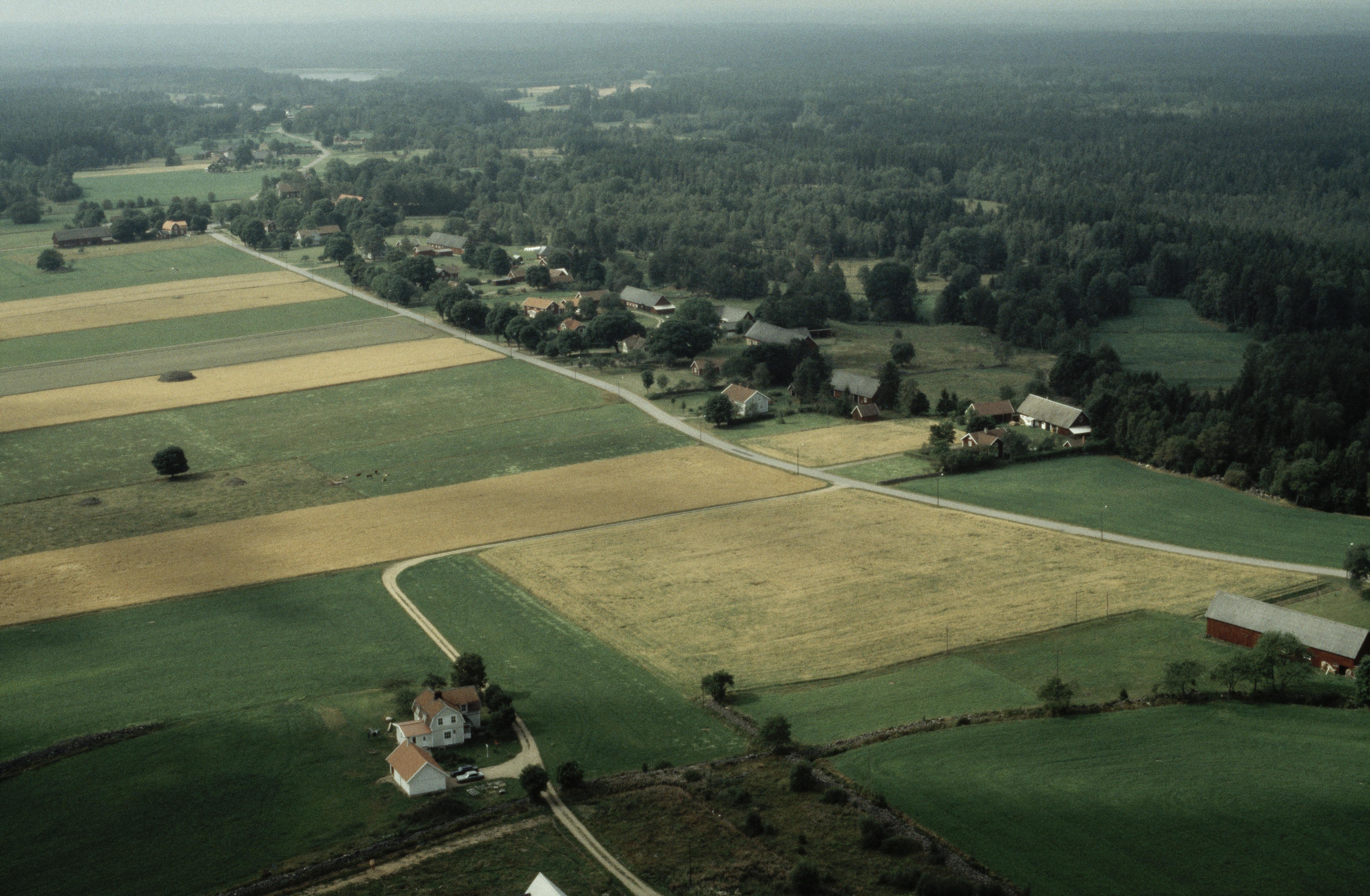 Beskrivning: Hörda by. Vid bildens mitt fornåker RAÄnr Berga 191:1 m.fl. Bilden är tagen mot (väderstreck): V