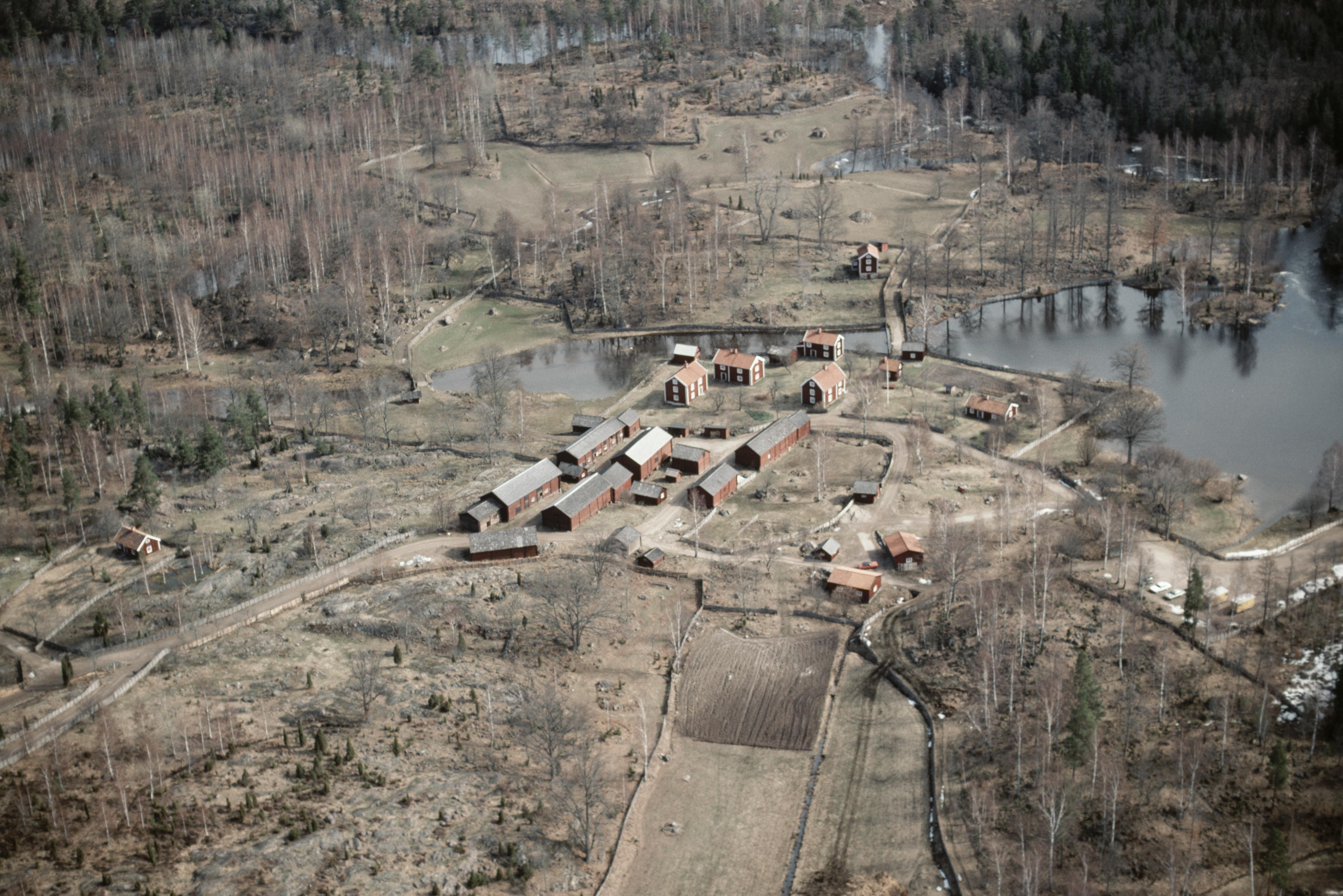 Beskrivning: Stensjö by, en oskiftad klungby och kulturreservat RAÄnr Döderhult 386:1. Bilden är tagen mot (väderstreck): NO