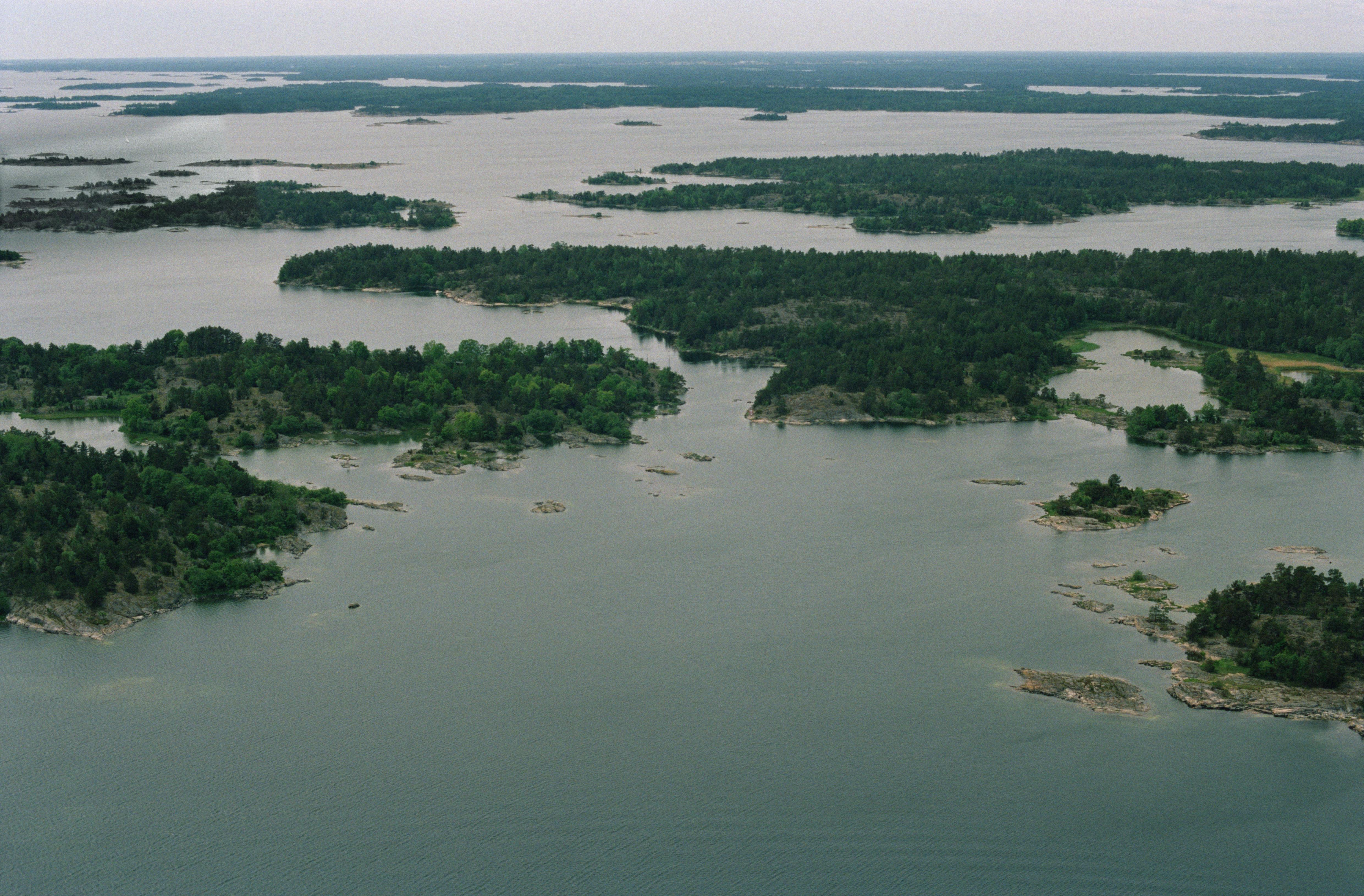 Beskrivning: Tjusts skärgård. Dagfaren och sundet mellan Gamla Städsholmen och Nabben, vid Nabbens naturreservat. Bilden är tagen mot (väderstreck): SSV