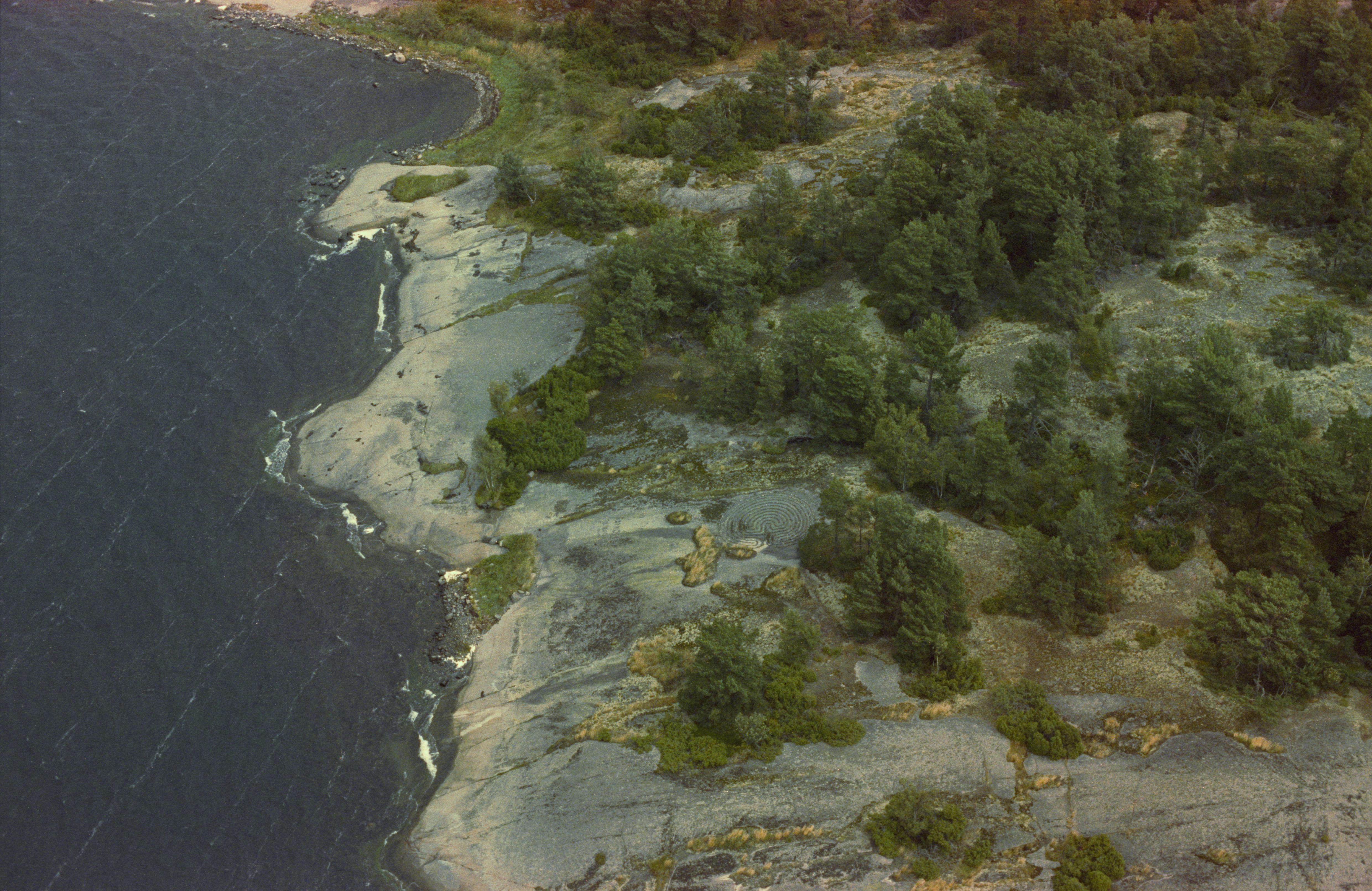 Beskrivning: Boskär i Misterhults skärgård. Labyrint RAÄnr Misterhult 69:1 och husgrund Misterhult 1119:1. Bilden är tagen mot (väderstreck): N