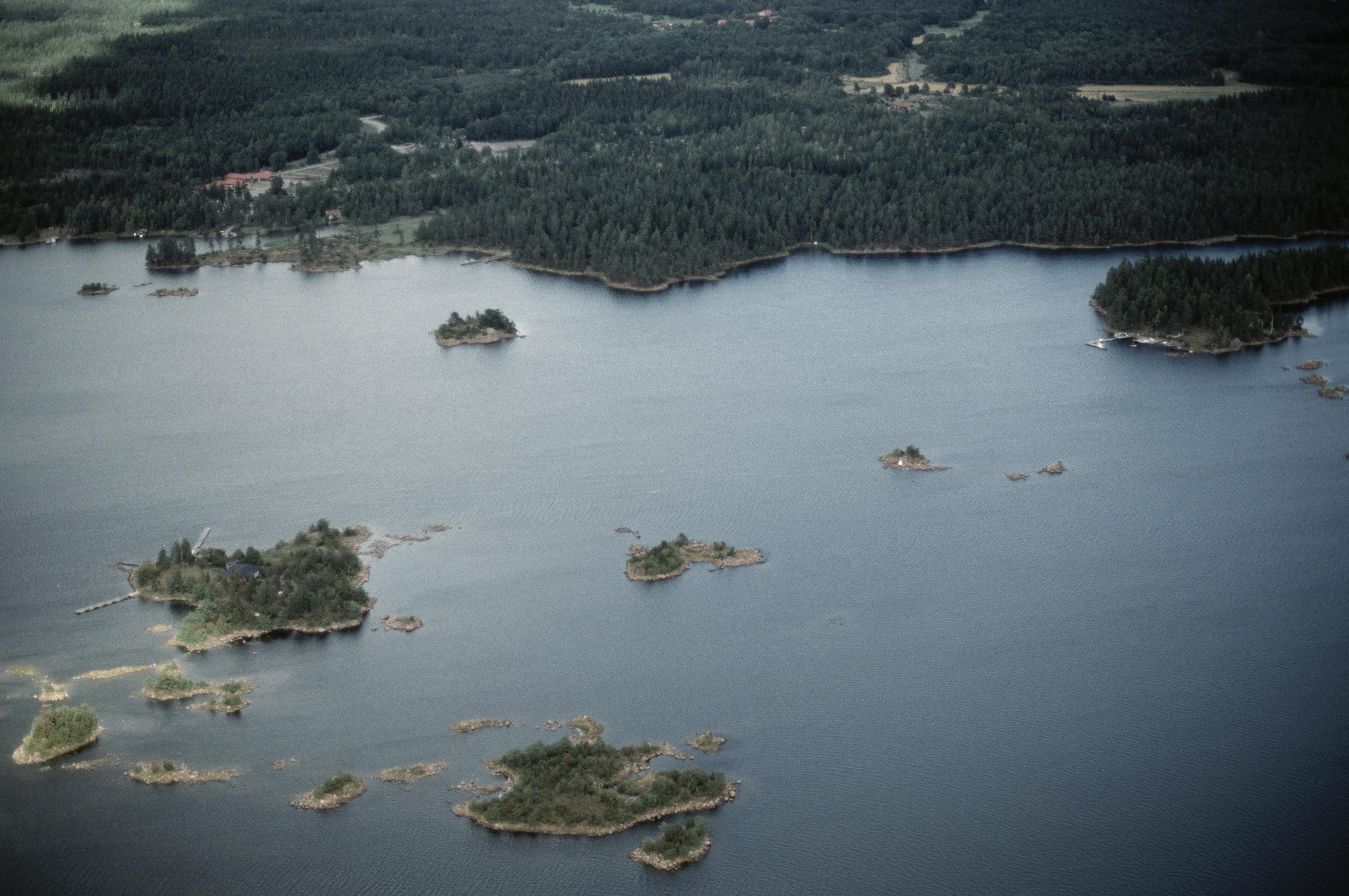 Beskrivning: Misterhults skärgård. I bildens övre del området Bredviksnäs - Fällkärret. Fornborg RAÄnr Misterhult 1250:1 på udden över bildens mitt. Bilden är tagen mot (väderstreck): N