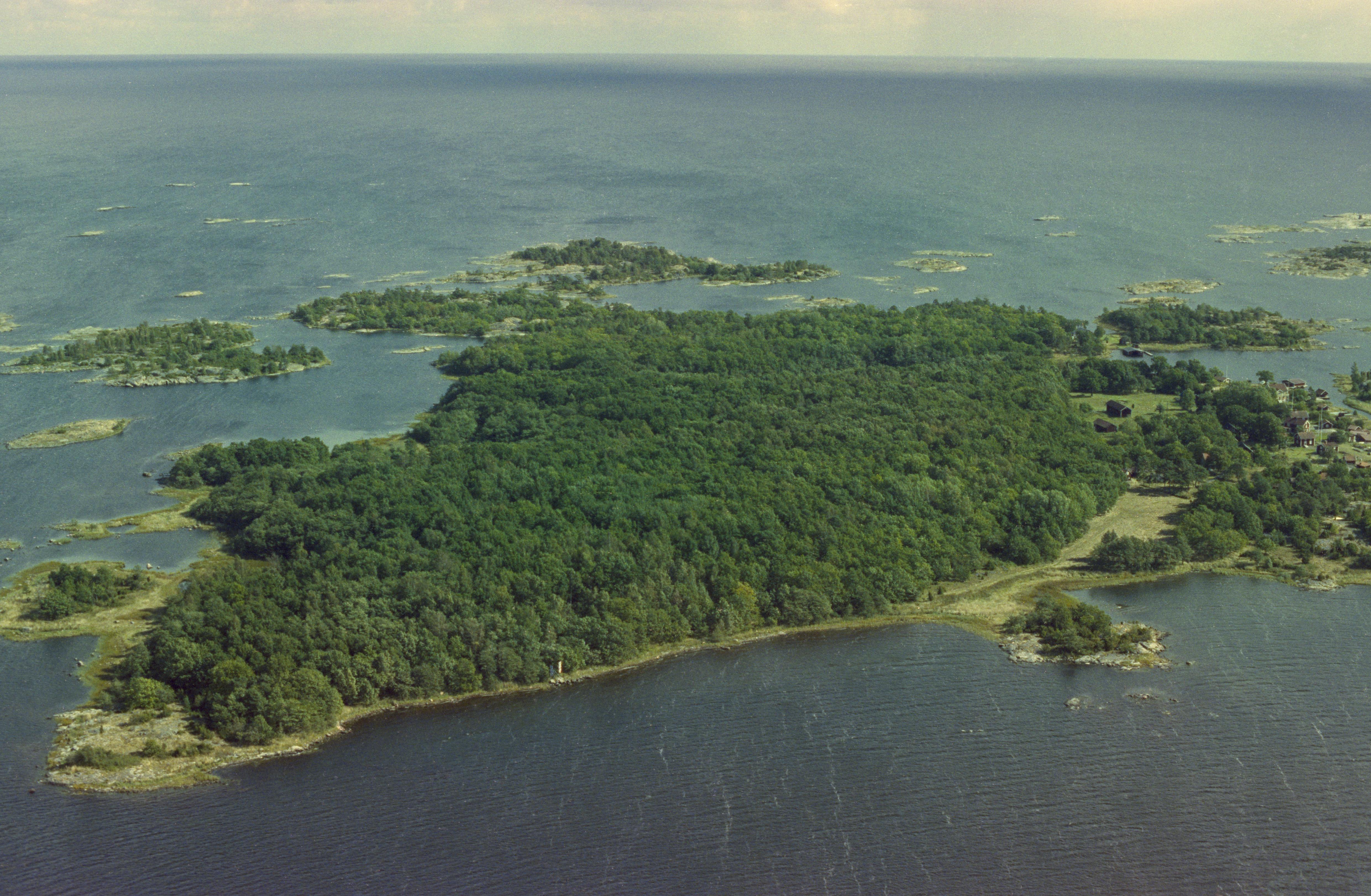 Beskrivning: Till höger Örö by / fiskeläge i Misterhults skärgård. Bilden är tagen mot (väderstreck): Ö