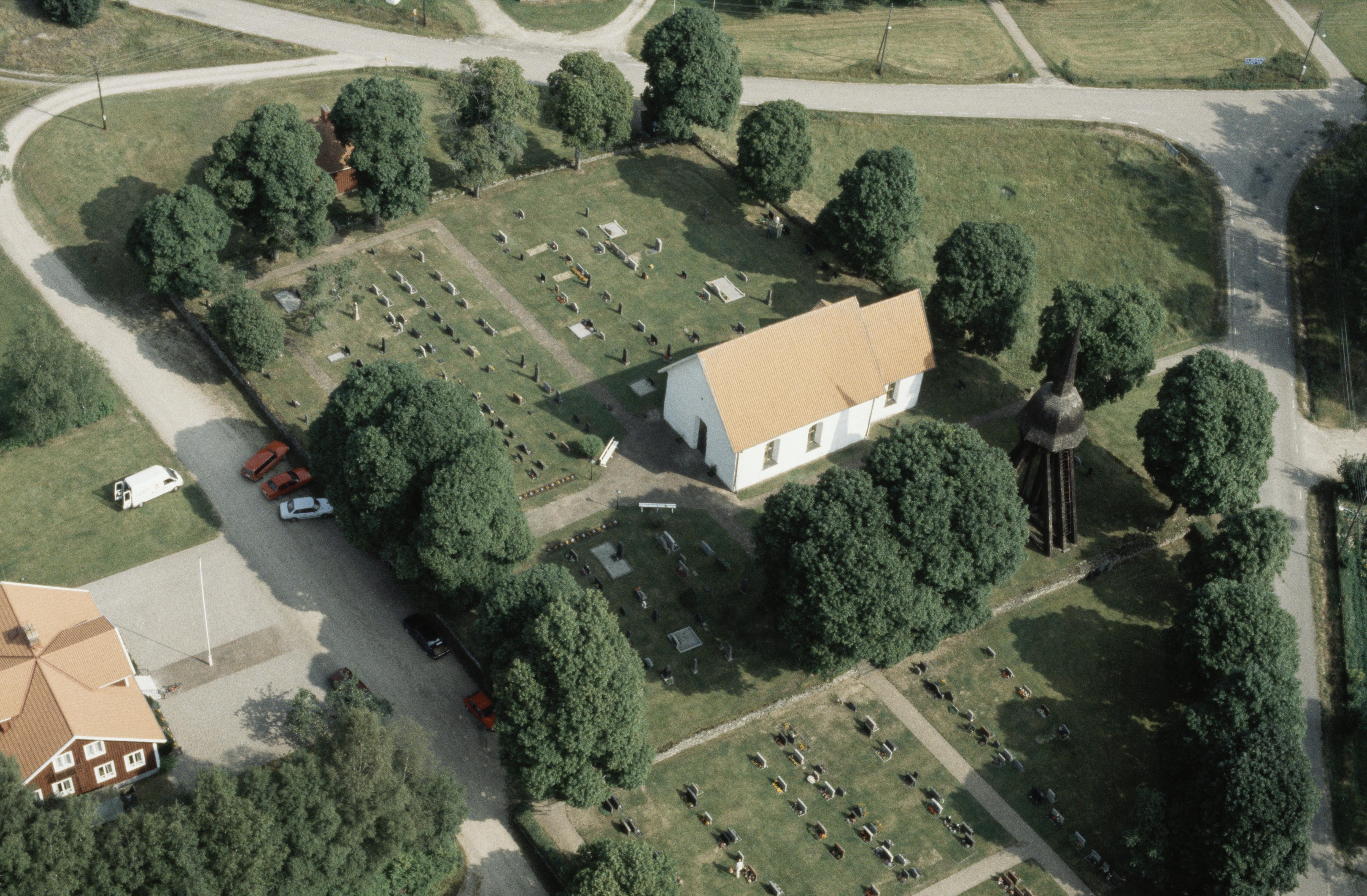 Beskrivning: Beskrivning: Nöttja kyrka vid Bolmån. Vid kyrkan bytomt RAÄnr Nöttja 42:5. Bilden är tagen mot (väderstreck): NO Fotosyfte: Flygbildsdokumentation