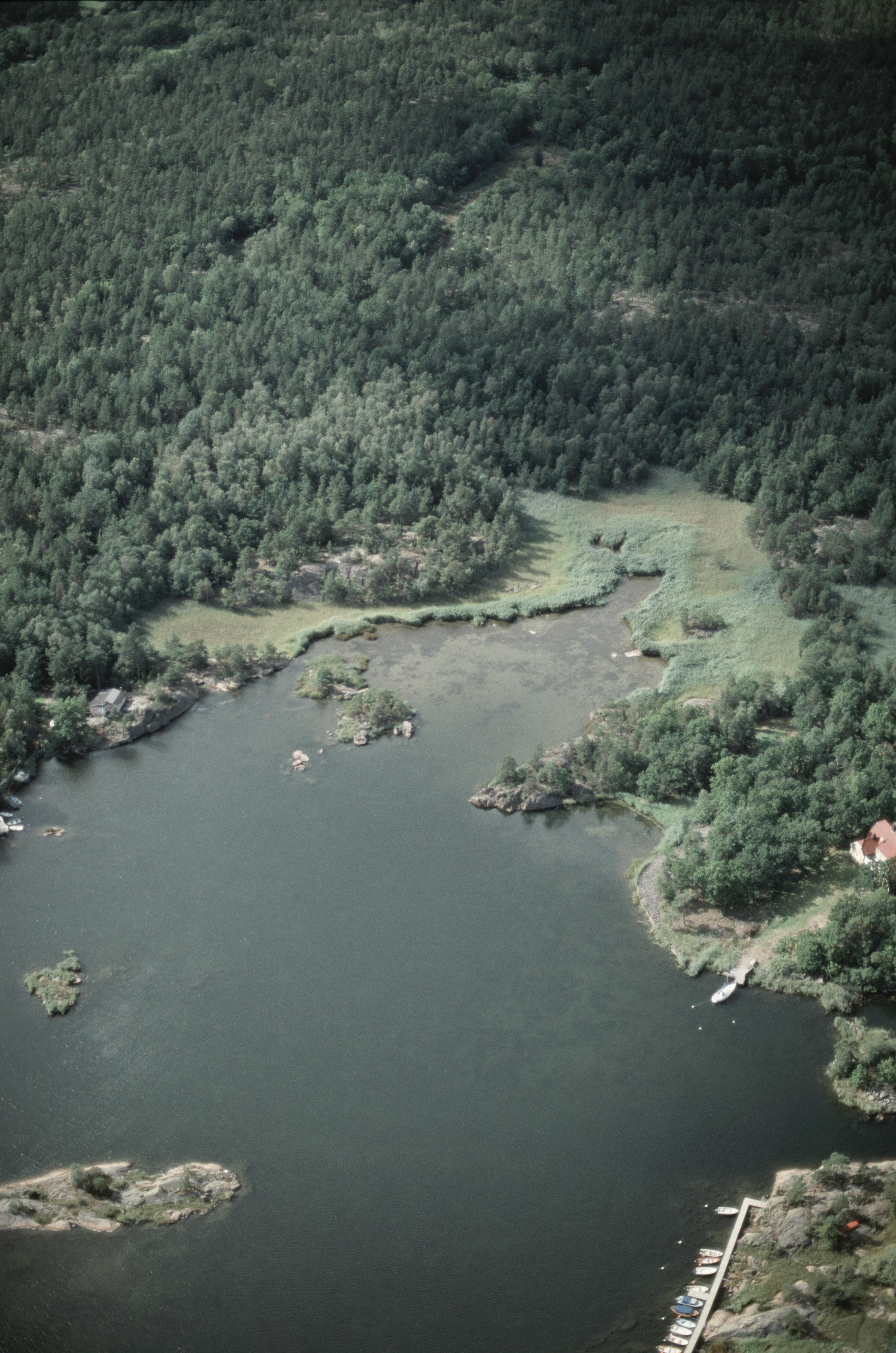 Beskrivning: I bildens mitt fornborg RAÄnr Döderhult 47:1 vid Sörvik, Borgefjärden. Bilden är tagen mot (väderstreck): V