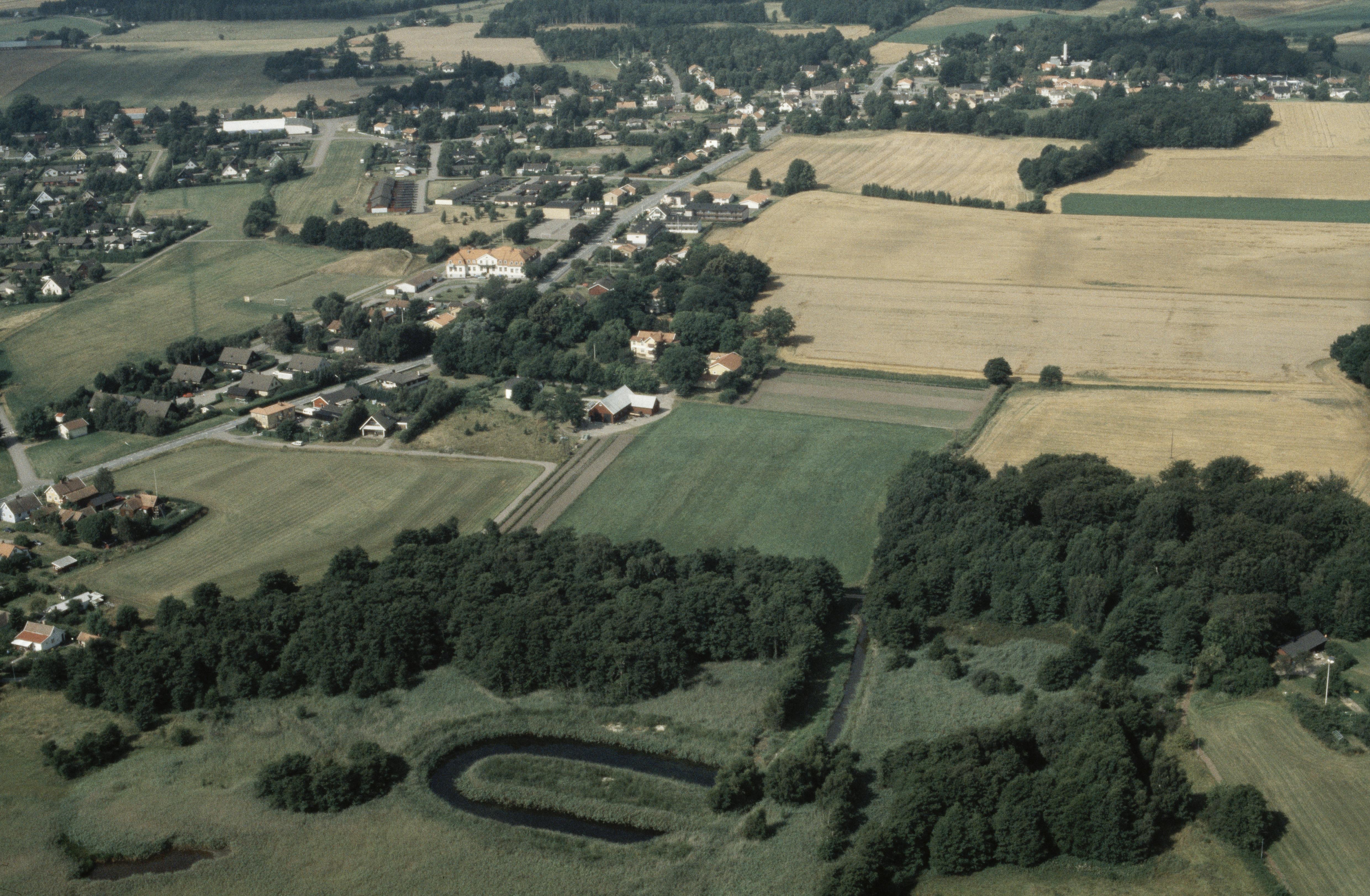 Beskrivning: Bergkvara tätort. Till höger om bildens mitt boplats RAÄnr Söderåkra 326:1. Bilden är tagen mot (väderstreck): V