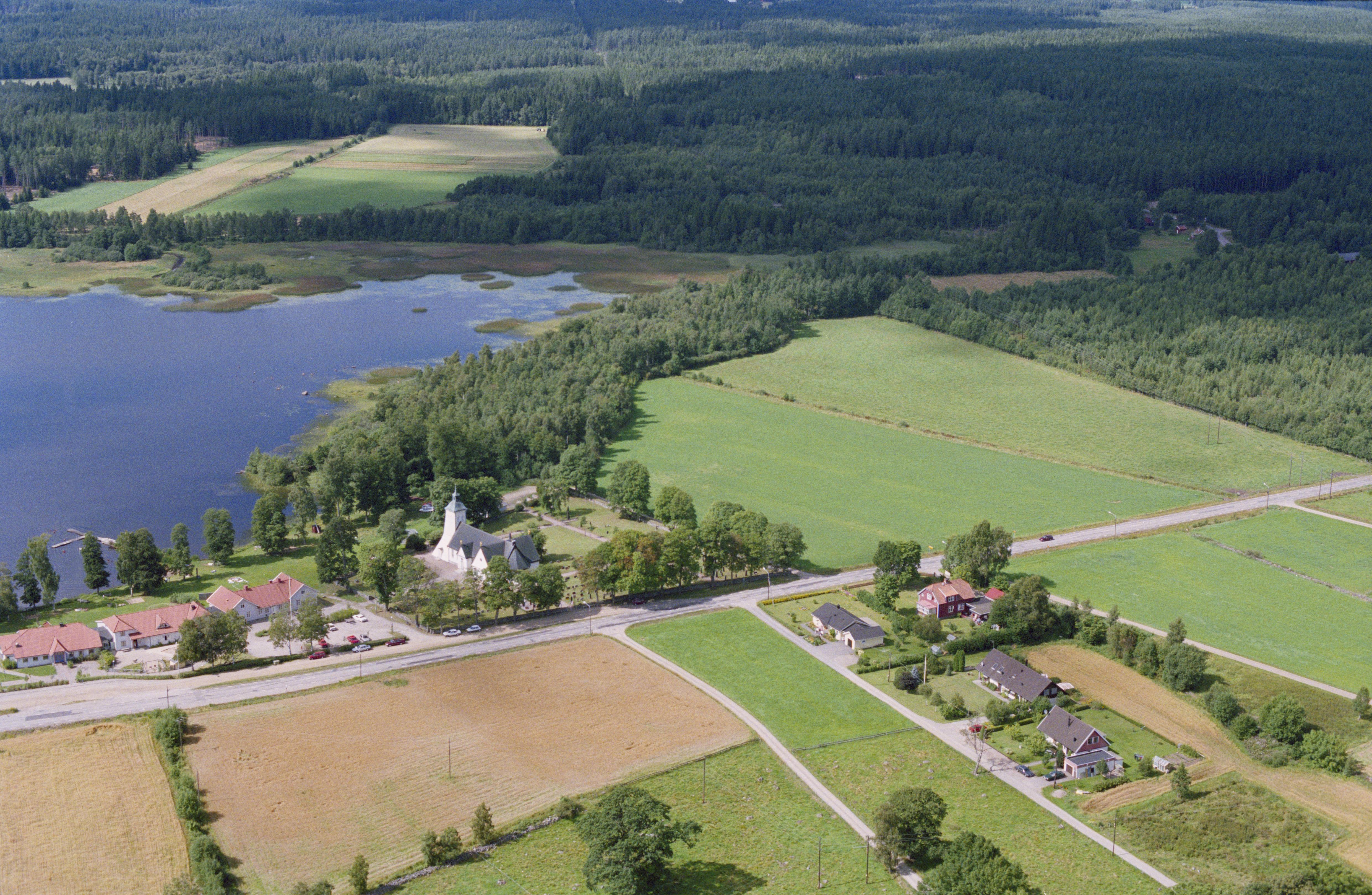 Beskrivning: Tävelsås kyrka. Bilden är tagen mot (väderstreck): NV