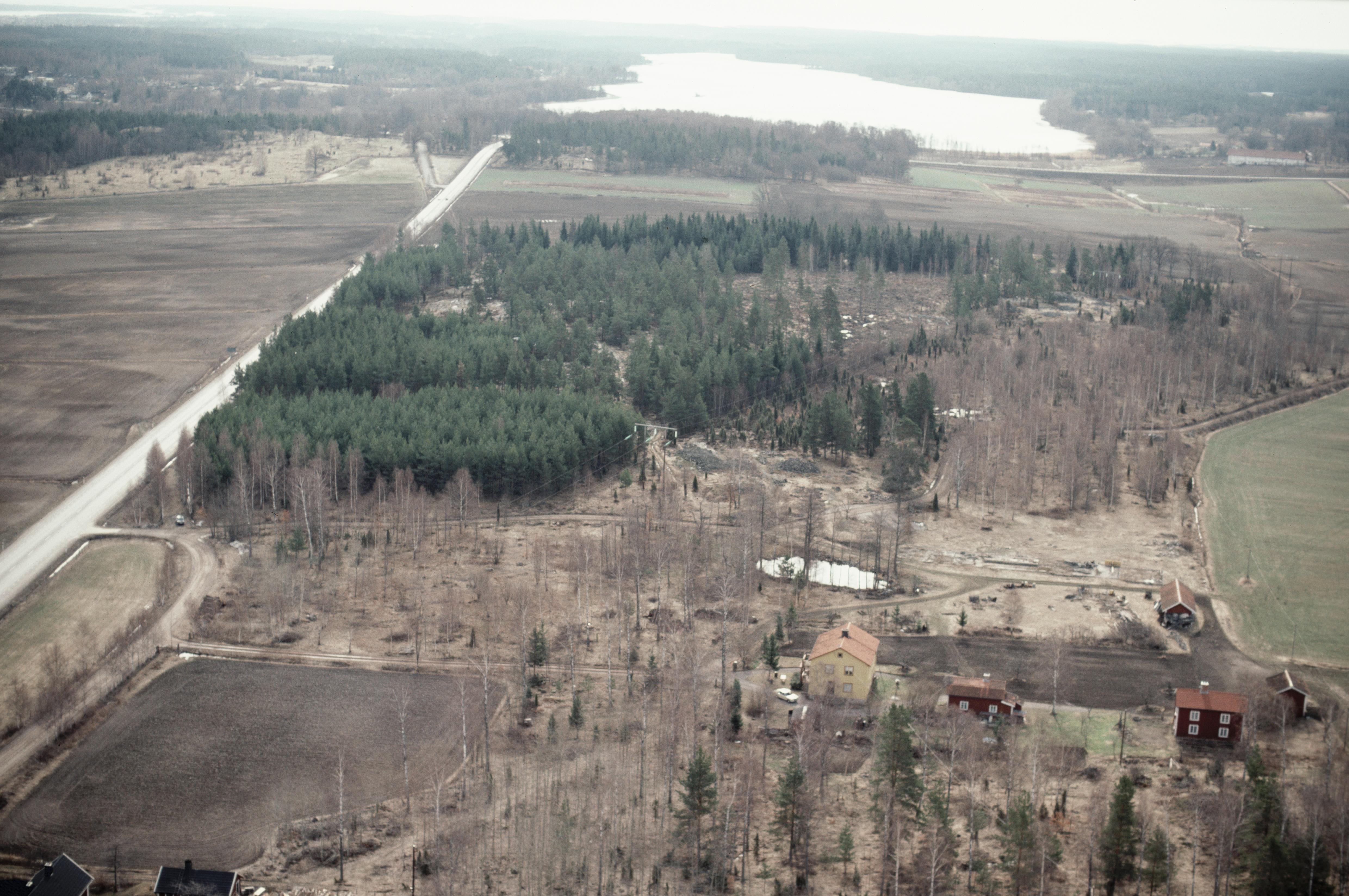 Beskrivning: Vid gränsen mellan socknen Törnsfall och Västervik. Björkhaga nere till h. Vid bildens mitt gravfält RAÄnr Törnsfall 171:1 m.fl. Sandebo/Herrhagen i Gläntan och sjön Kvännaren i bildens övre del. Bilden är tagen mot (väderstreck): SO