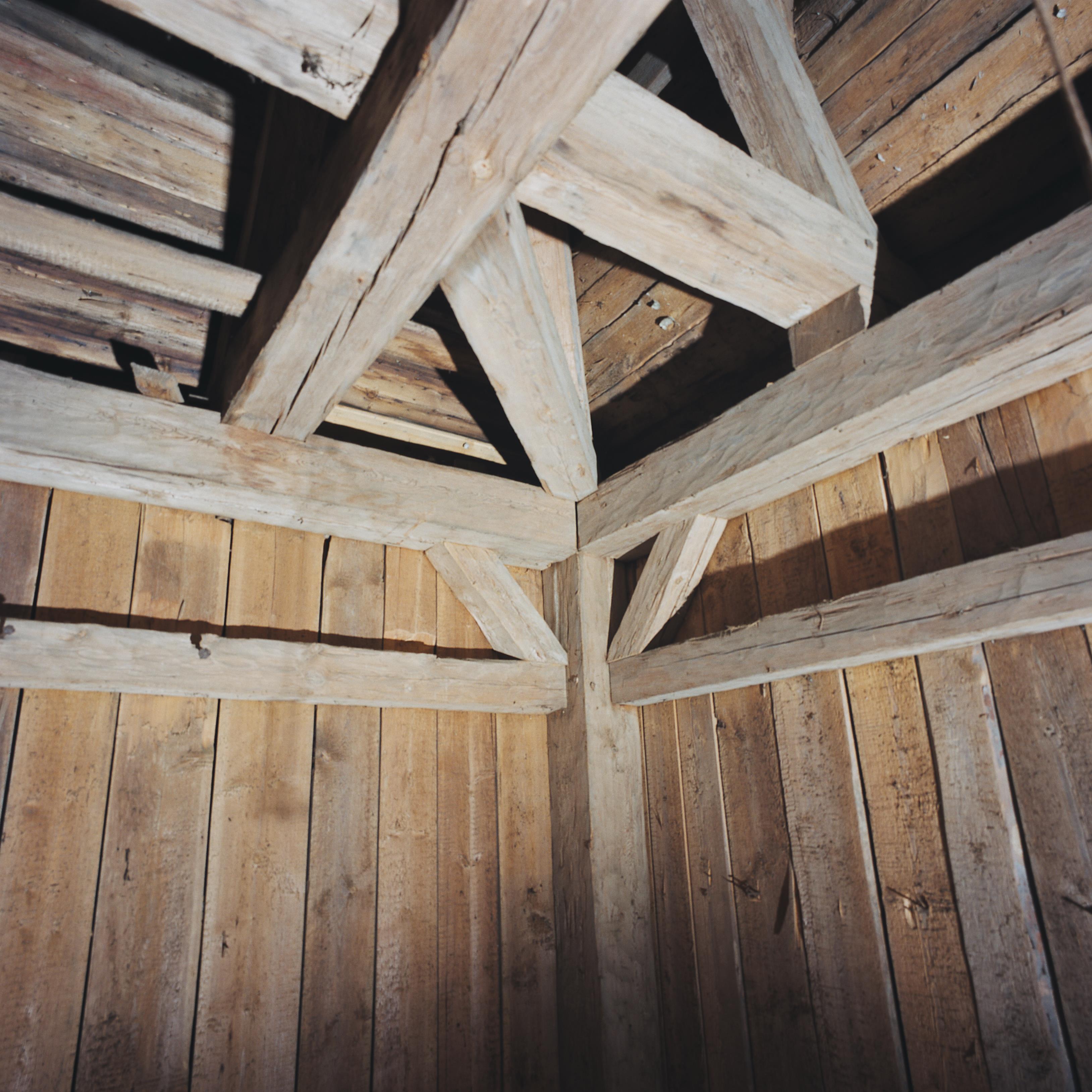 Beskrivning: Anmärkning (övrig): Roslags-Kulla (Roslags-Kulla sn). Utpräglad herrgårdsbygd som i huvudsak dominerats av Östanå. Huvudbyggnad i nyklassicistisk stil och bevarad barockträdgård. Kyrkan är intressant genom ursprung i kombinerad slotts- och sockenkyrka. Den är uppförd i trä efter en arkitekturstil som hör hemma i Finland. Välbevarat mindre komministerboställe och skola. Beskrivning: Tornkonstruktionen. Fotosyfte: Dokumentation