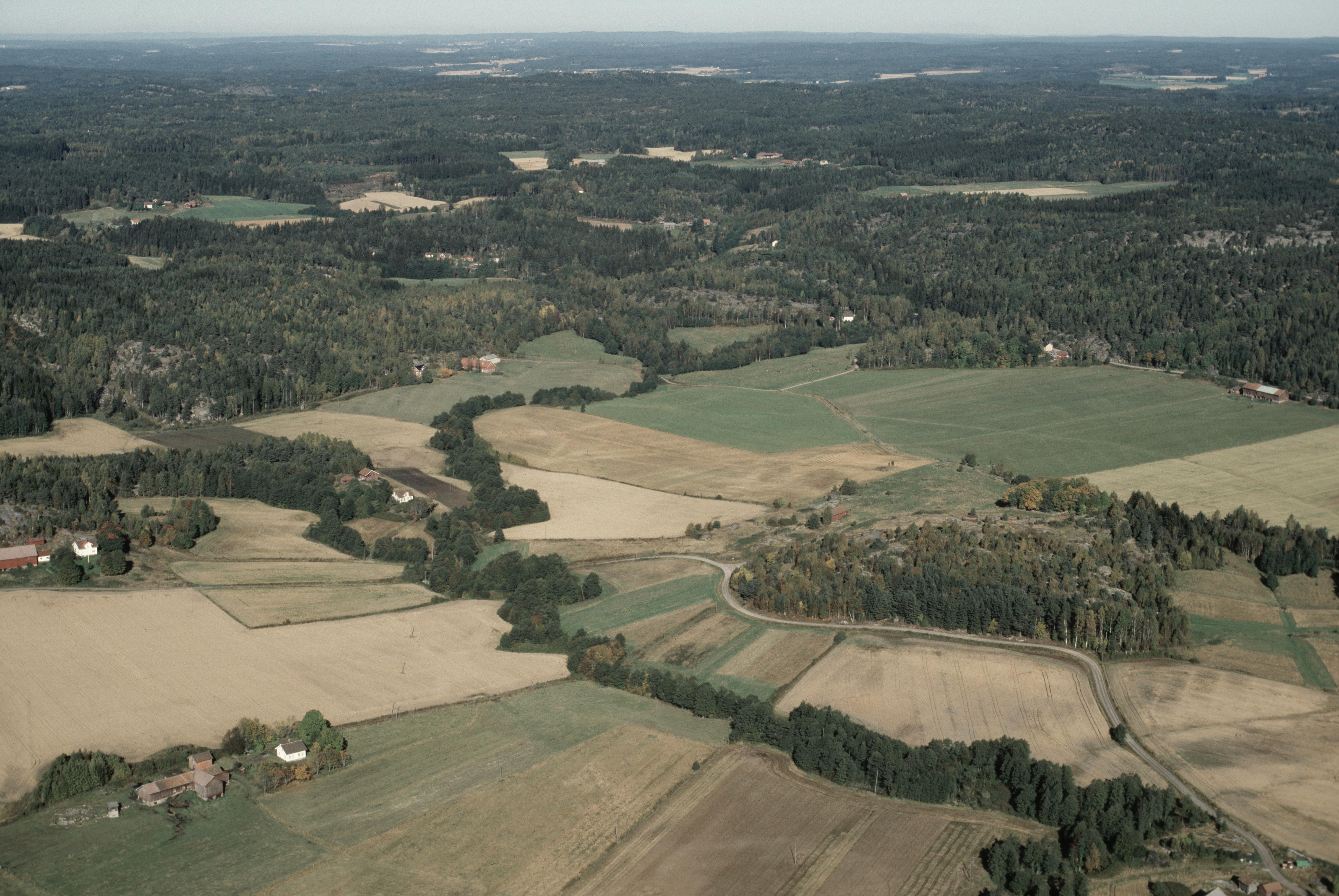 Beskrivning: Övre Lommeland och Prästeröd. Till höger vid bildens mitt Lommelands gamla tomter RAÄnr Lommeland 170:1 och 171:1 samt hällristning 59:1 m.fl. Bilden är tagen mot (väderstreck): N