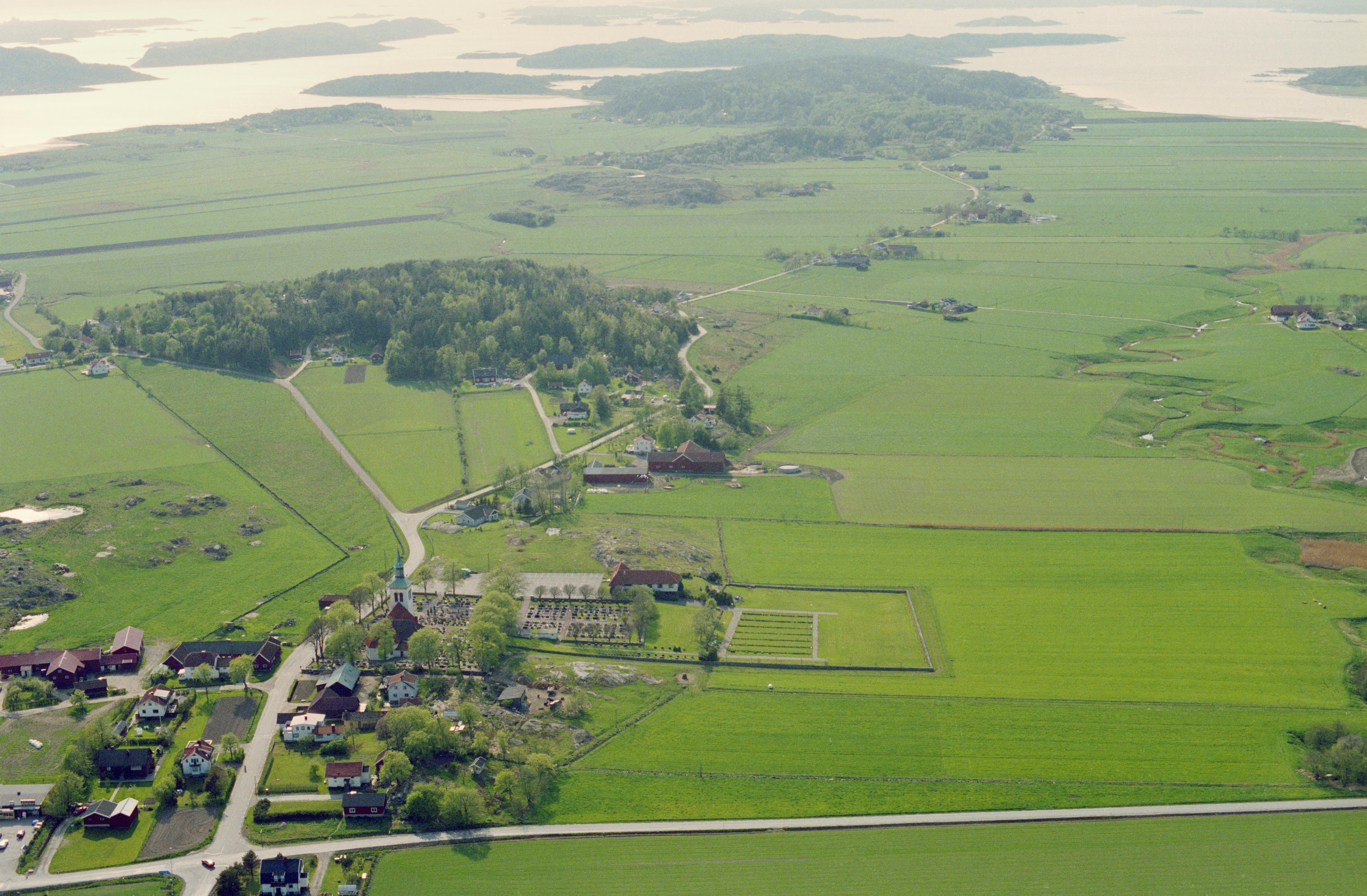 Beskrivning: Anmärkning (övrig): Riksintresse-nr/namn: O17 - Solberga - Ödsmål. Socken: Solberga. Motivering: Odlingslandskap i kustbygd där olika förhistoriska lämningar tillsammans med utskiftad jordbruksbebyggelse tillsammans bildar ett för Bohuslän representativt öppet och betat kulturlandskap. (Fornlämningsmiljö, Gårdsmiljö). - Uttryck för riksintresset: Bebyggelse från 1700- till 1900-talet; främst utskiftade kringbyggda gårdar från 1800-talets senare del, fornlämningar från skilda tidsperioder bl a Åseby stor-rösen, järnåldersgravfält i Ytter Restad. - I området ingår även: Kolerakyrkogård från 1834. [Texten uppdaterat av Riksantikvarieämbetet våren 2013.] Beskrivning: Solberga kyrka och kyrkby i Vallbyåns dalgång. I bildens övre del Vallby och vikarna Ödsmål kile och Vallby kile. Bilden är tagen mot (väderstreck): VNV Fotosyfte: Flygbildsdokumentation