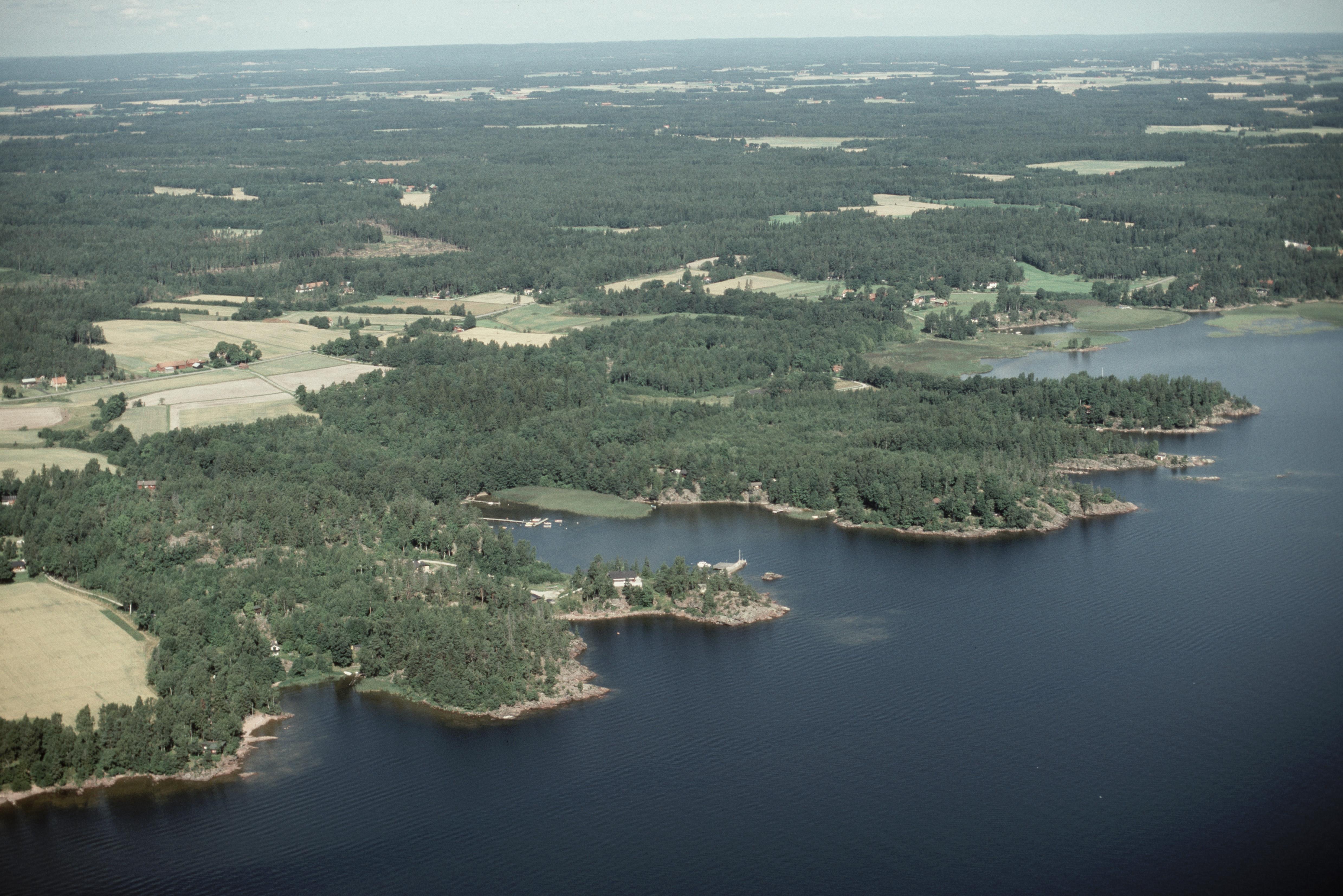 Beskrivning: Sjön Vänern, sydvästra delen. Vänerkusten mellan byarna Takan och Södra Timmervik. Vid bildens mitt Skeppsudden med fossil åker RAÄnr Gestad 179:1. Bilden är tagen mot (väderstreck): N