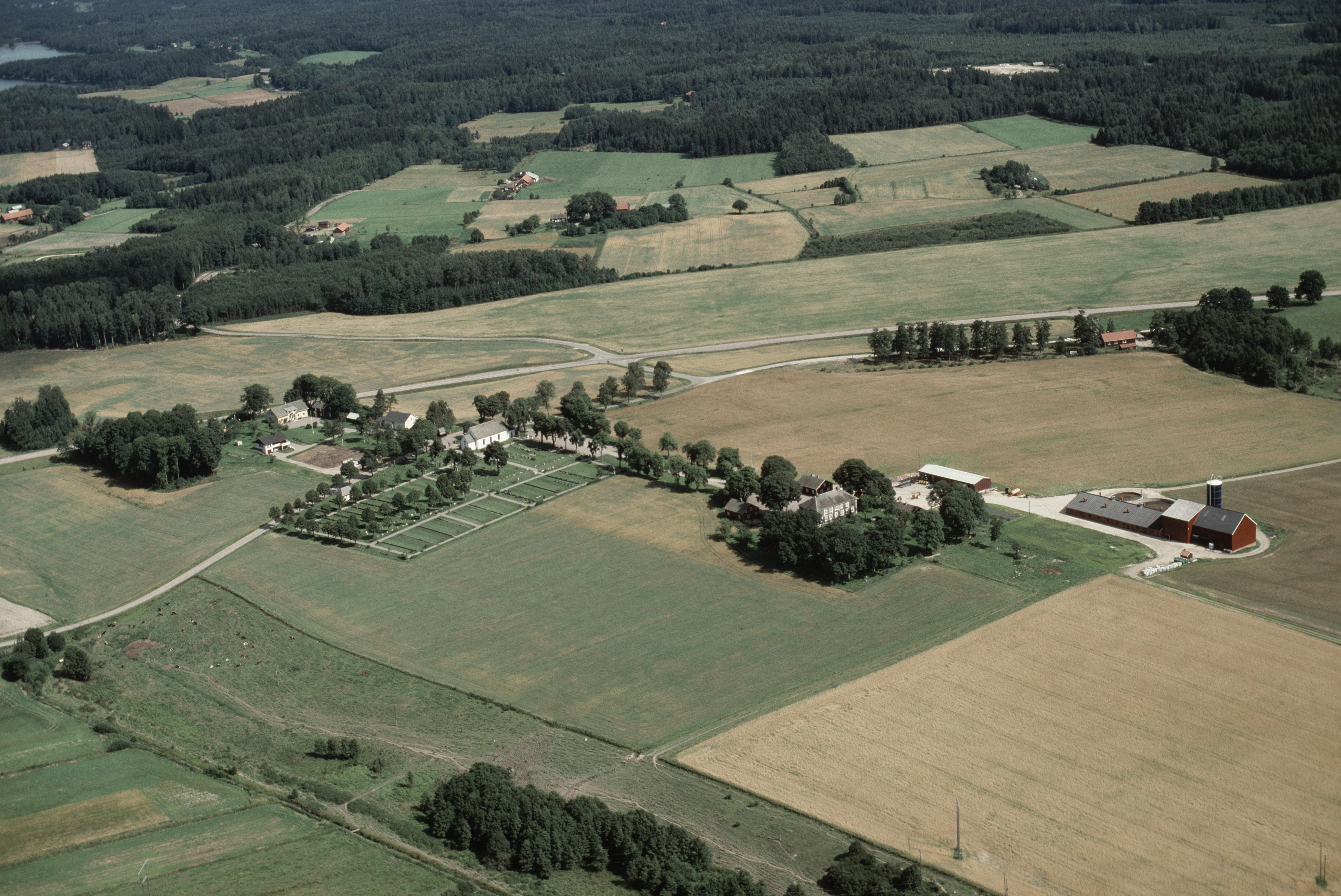 Beskrivning: Herrgården Ekholmen. Gunnarsnäs kyrka till vänster. Bilden är tagen mot (väderstreck): NO