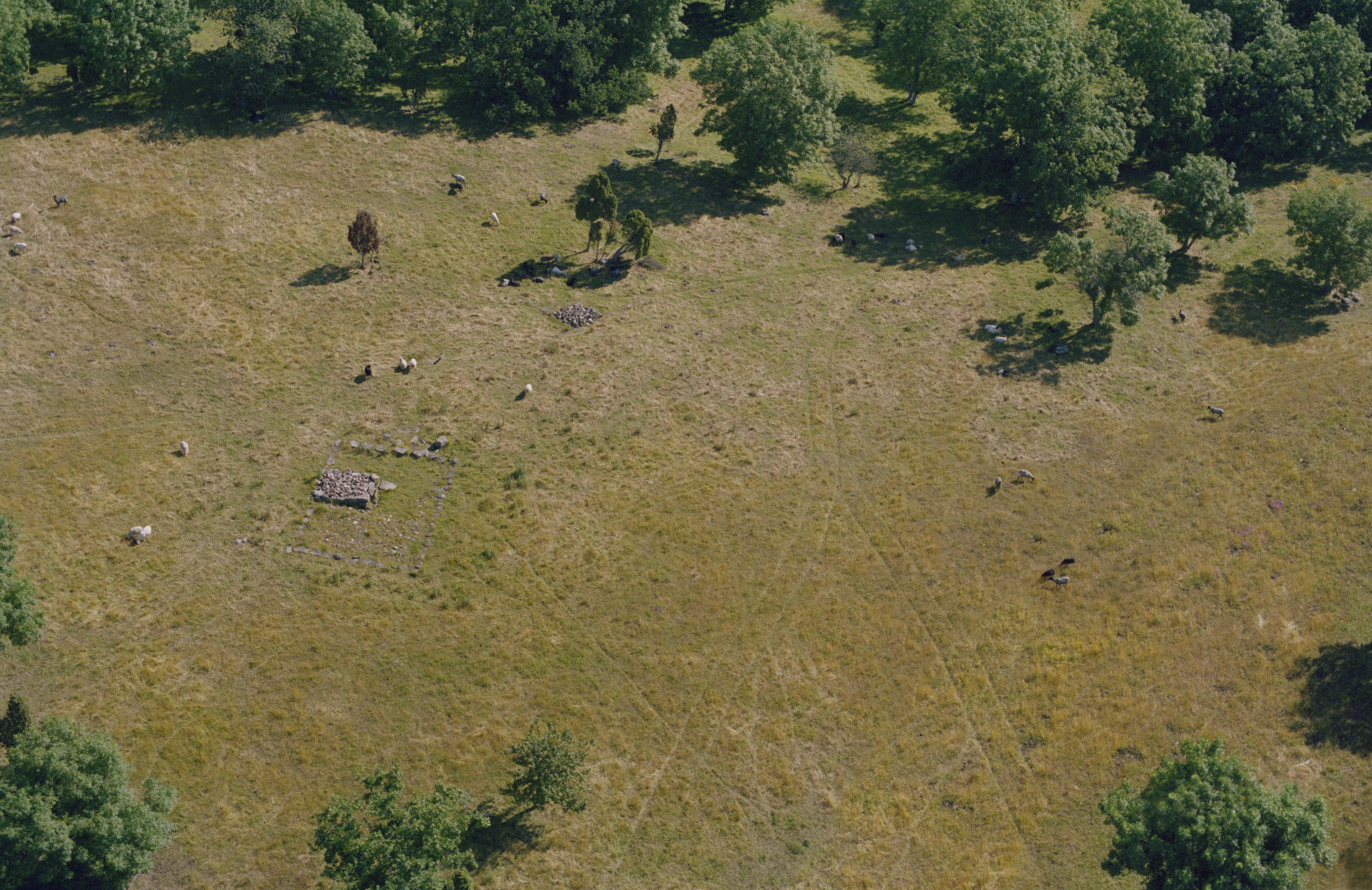 Beskrivning: Husgrunder i boplats Fjälängar RAÄnr Ala 97:1, fossil åker och hägnad Ala 106:1-2, m.fl. Bilden är tagen mot (väderstreck): NO