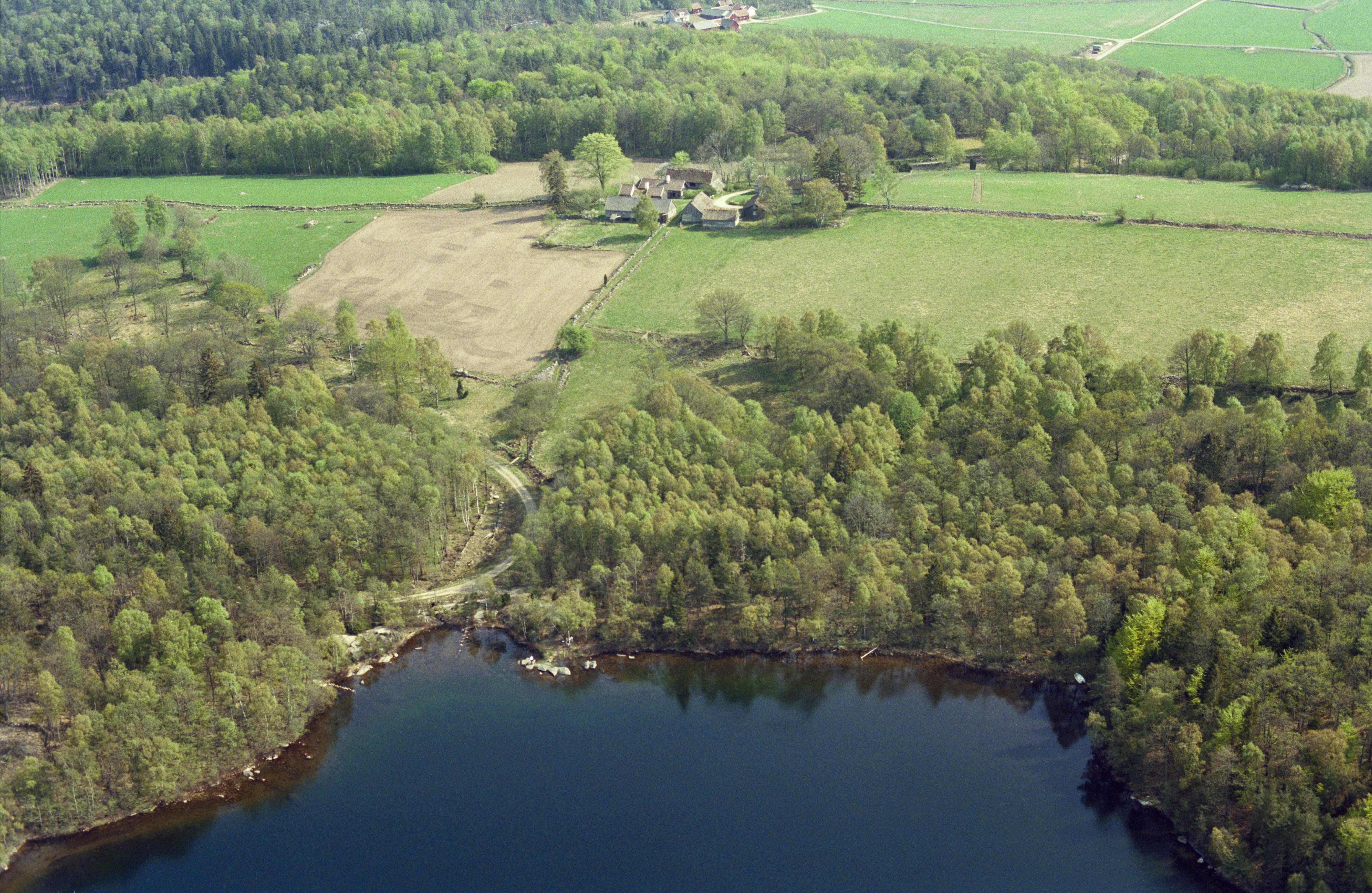 Beskrivning: Äskhults by RAÄnr Förlanda 50:1. Svinsjön I bildens nedre del. Bilden är tagen mot (väderstreck): SO