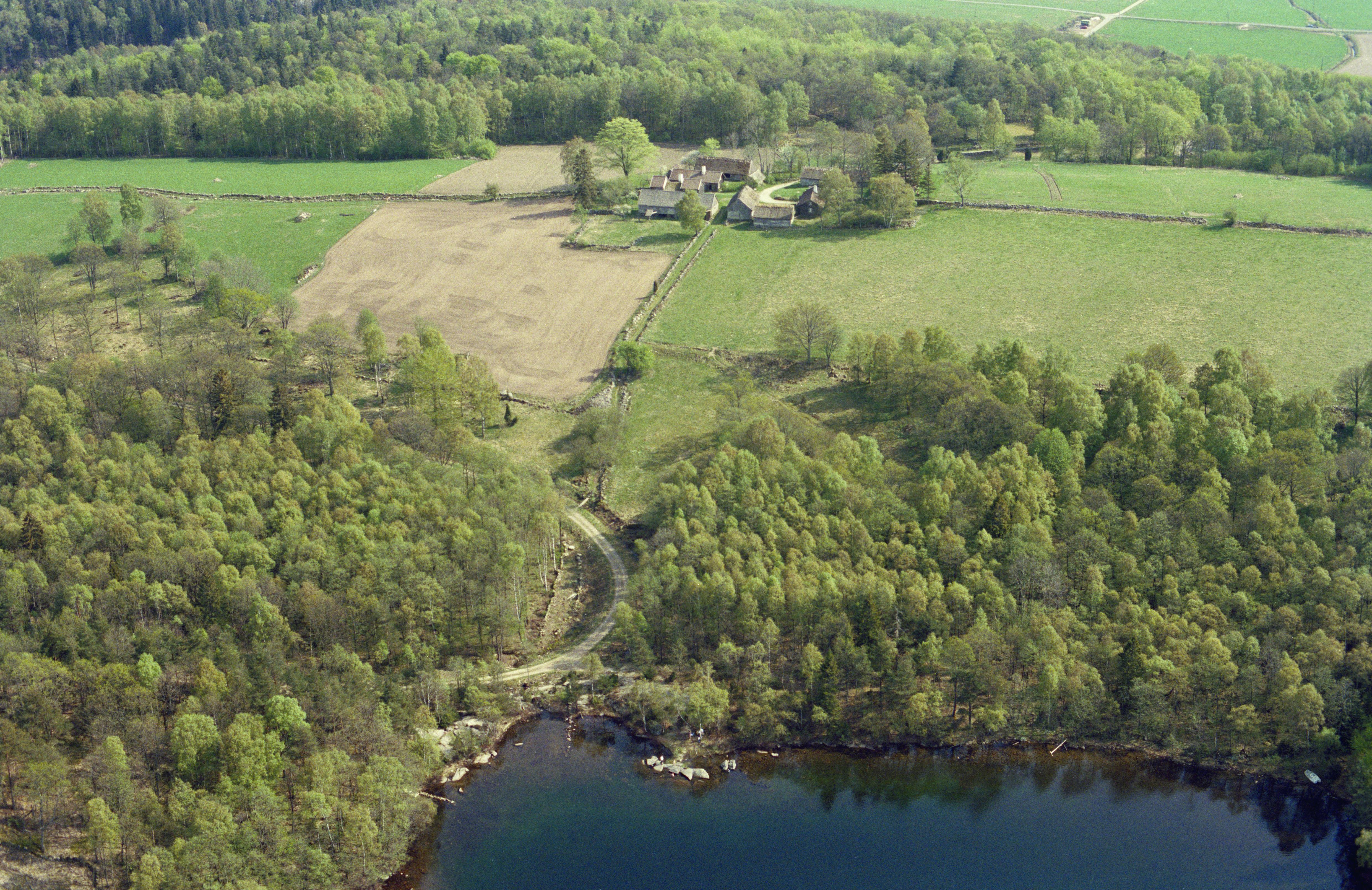 Beskrivning: Äskhults by RAÄnr Förlanda 50:1. Svinsjön I bildens nedre del. Bilden är tagen mot (väderstreck): SO
