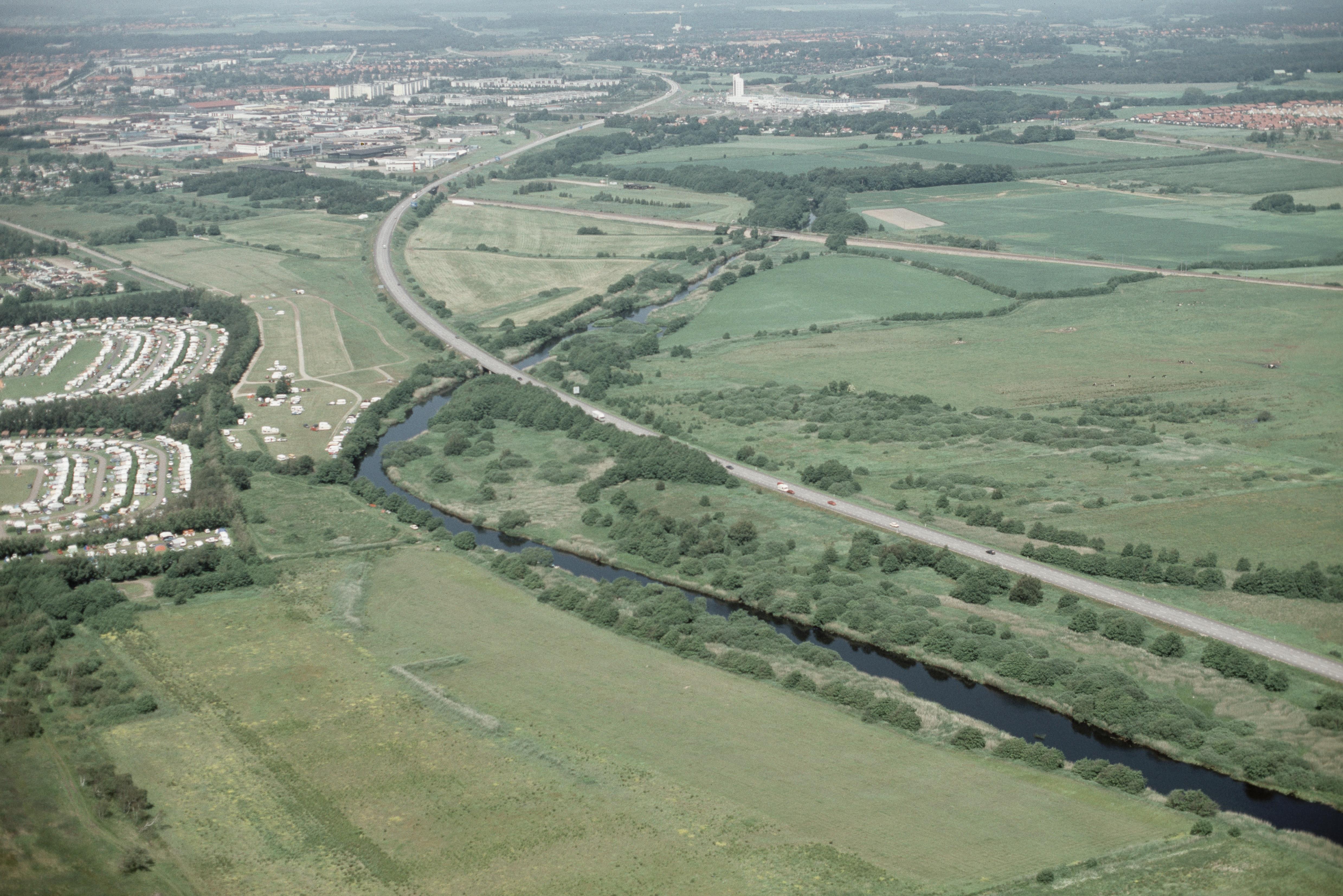 Beskrivning: Fylleån vid Hagön på gränsen mellan socken Halmstad (till v.), Trönninge (till h.) och Snöstorp (bildens övre del). Boplats RAÄnr Snöstorp 104:1 vid bildens mitt. Bilden är tagen mot (väderstreck): N