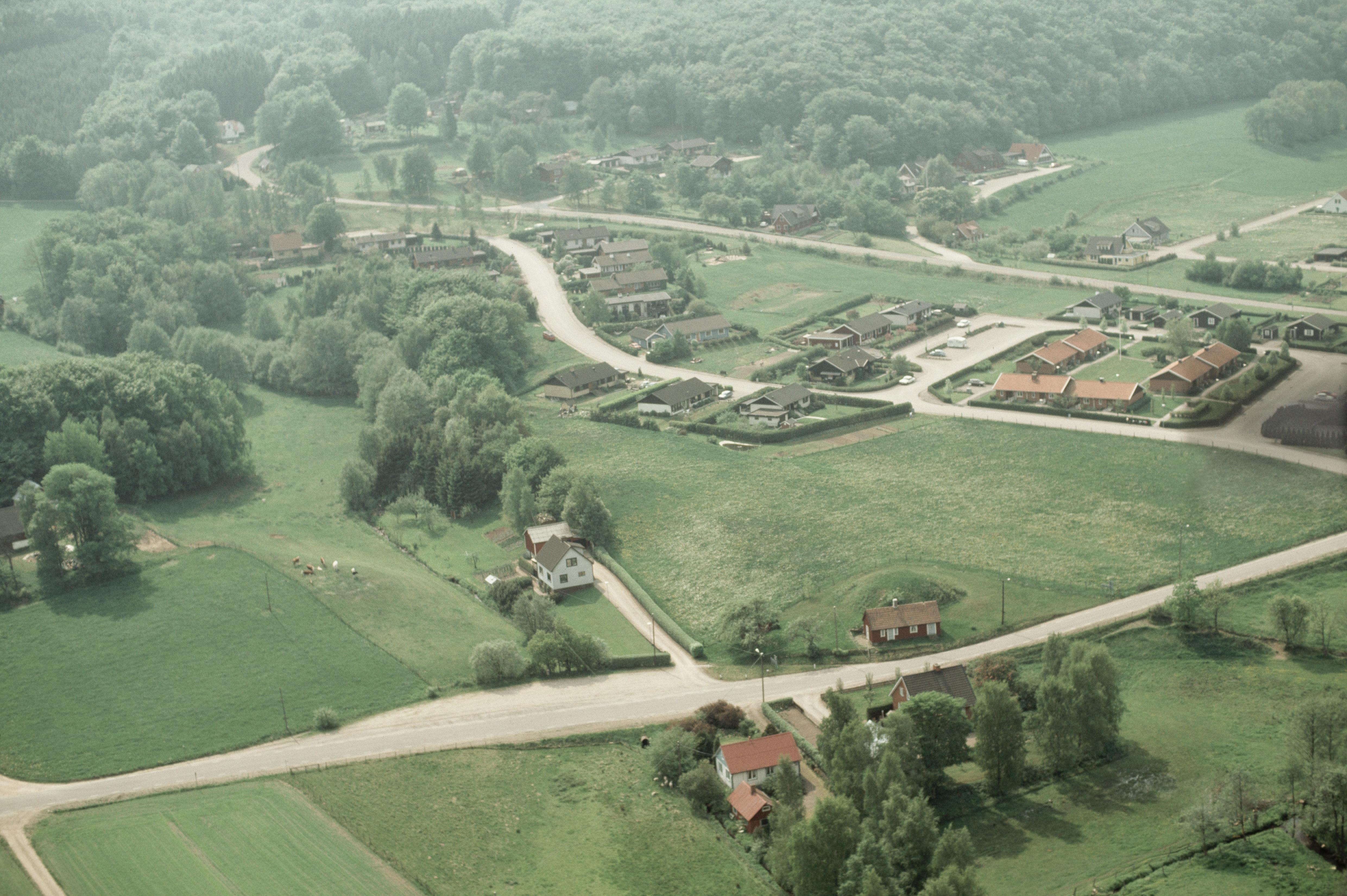 Beskrivning: Hasslövs by. Lugnarohögen RAÄnr Hasslöv 3:1 vid bildens mitt. Bilden är tagen mot (väderstreck): SV