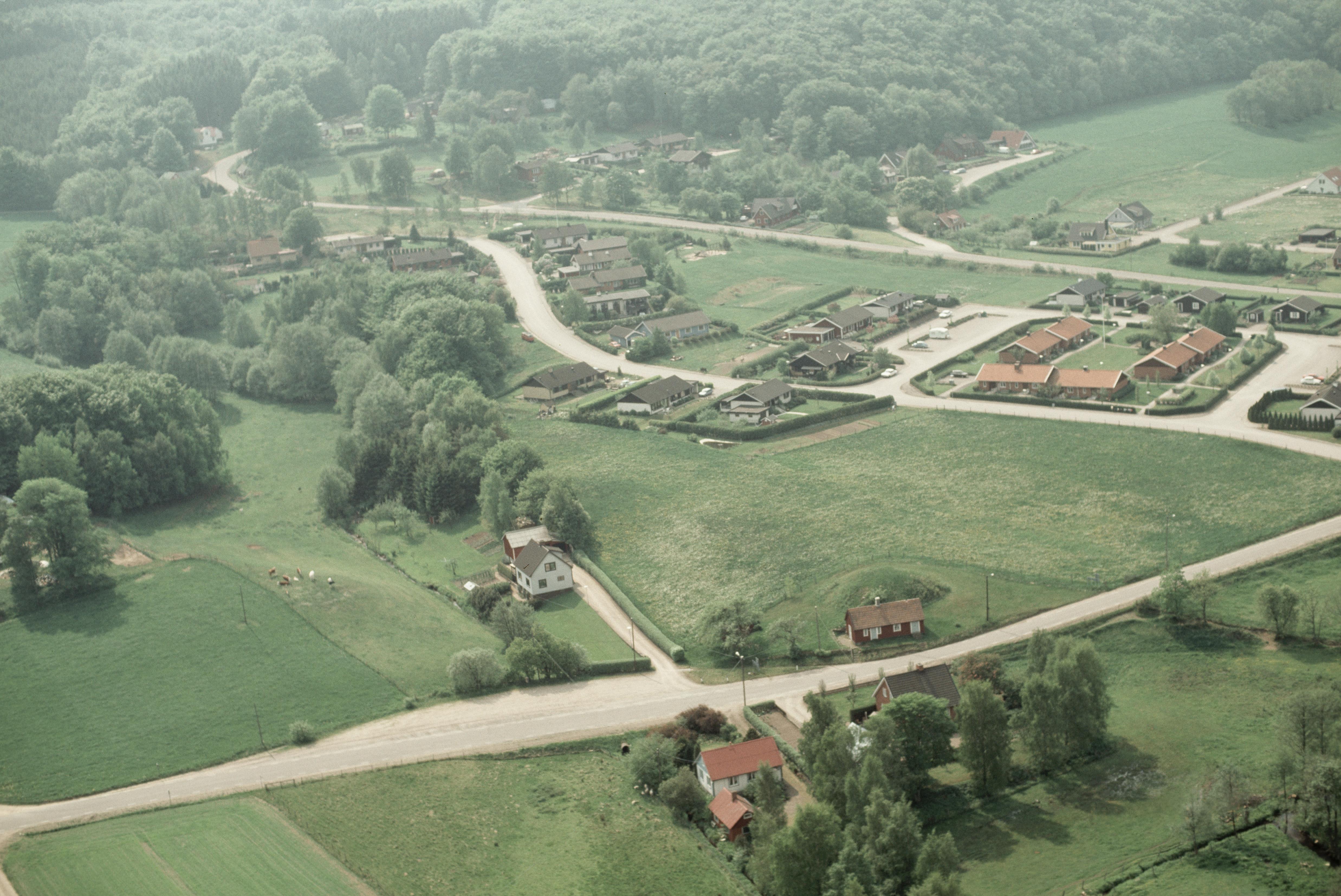 Beskrivning: Hasslövs by. Lugnarohögen RAÄnr Hasslöv 3:1 vid bildens mitt. Bilden är tagen mot (väderstreck): SV