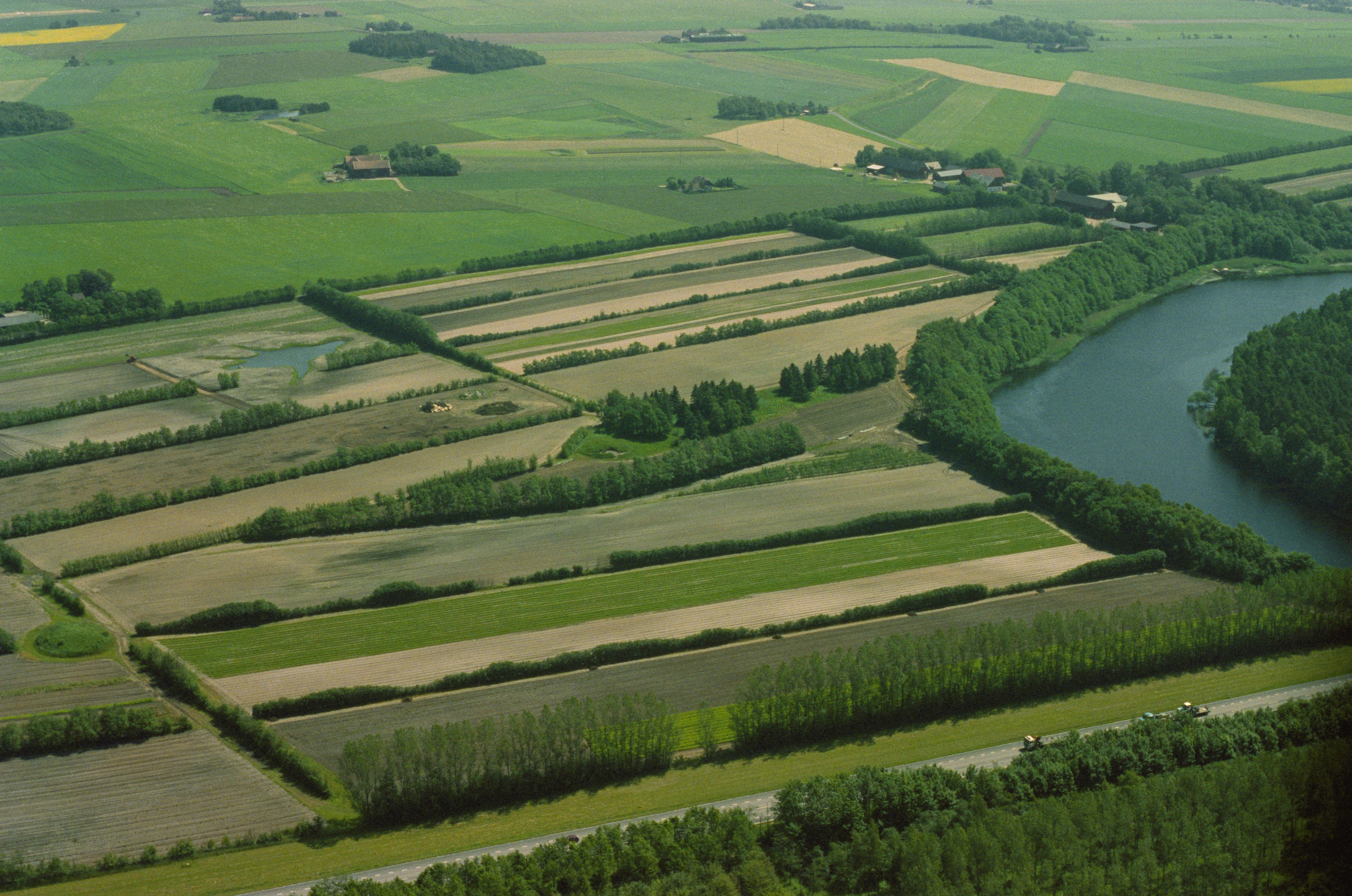 Beskrivning: I bildens mitt högarna RAÄnr Laholm 4:1-2 vid ån Lagan i norra delen av Restads by. Bilden är tagen mot (väderstreck): Ö