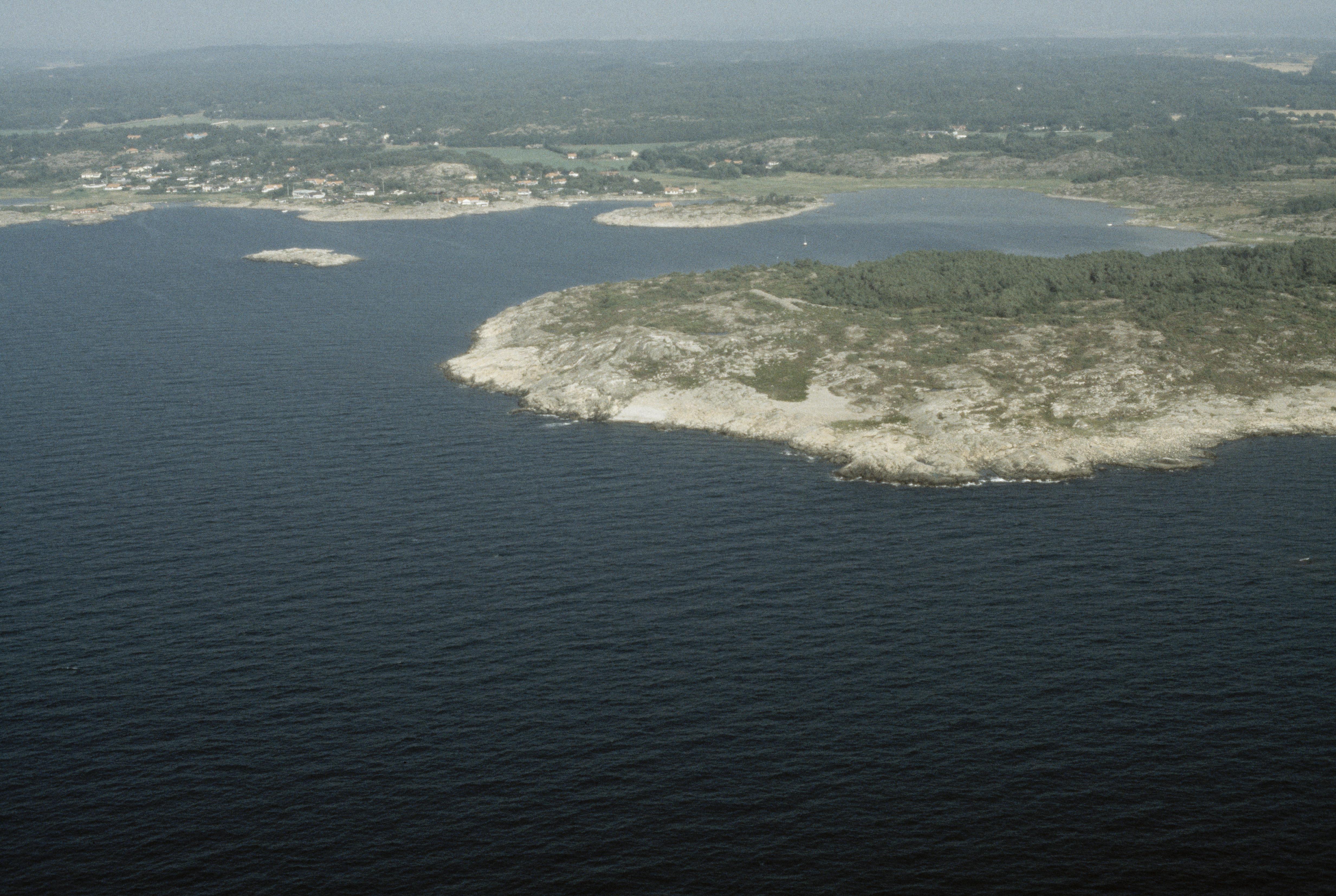 Beskrivning: Norra delen av Onsala Sandö. Röse RAÄnr Onsala 82:1 i bildens nedre del. I bildens övre del udden Hagaholm och orten Västra Hagen. Bilden är tagen mot (väderstreck): NO