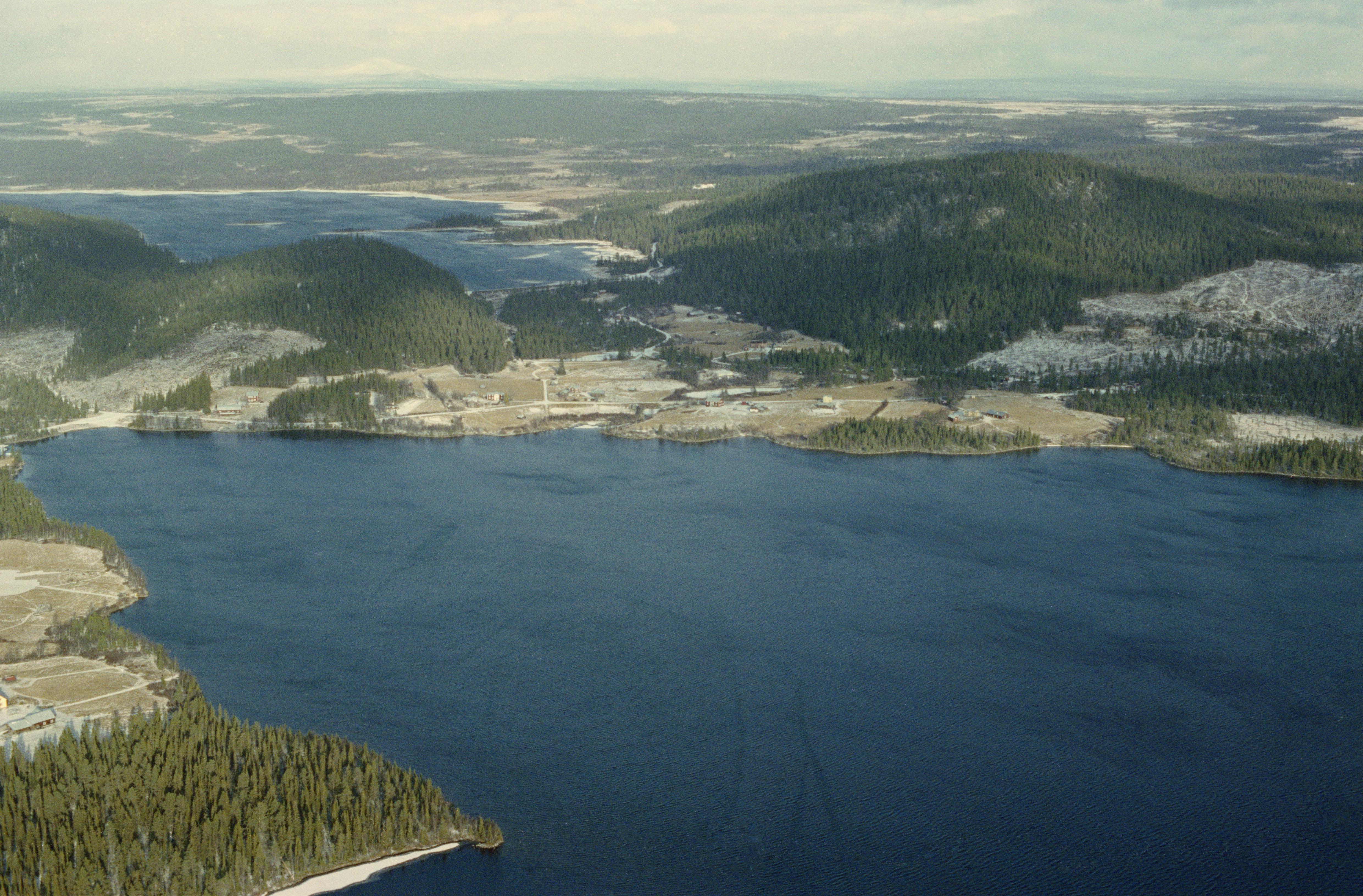 Beskrivning: Beskrivning: Grannbergets by vid bildens mitt. Neder-Särvsjön i bildens nedre del. Grannberget med hällmålning RAÄnr Hede 201:1 uppe till höger. I bildens övre del Över-Särvsjön med boplats RAÄnr Hede 258:1-4 m.fl. Bilden är tagen mot (väderstreck): N Fotosyfte: Flygbildsdokumentation
