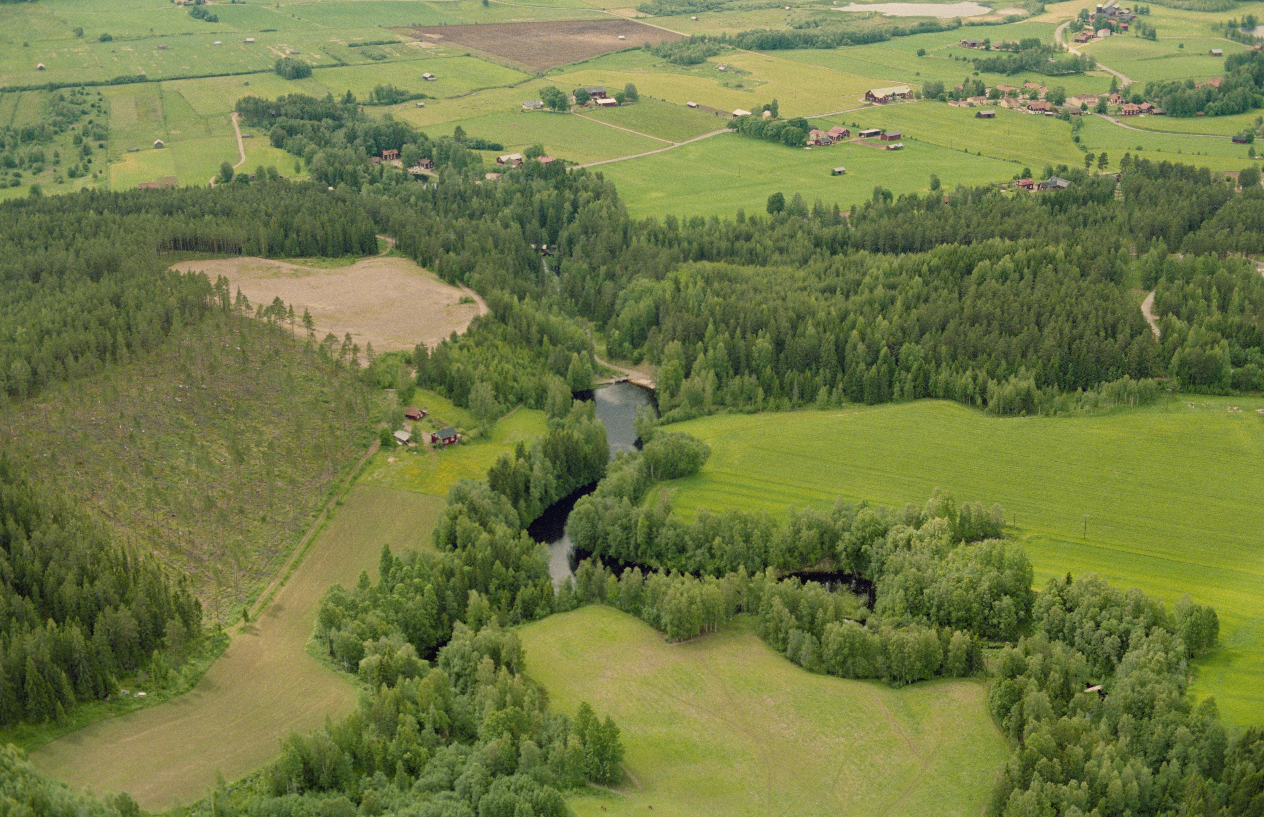 Beskrivning: Växbo by, nordöstra delen. Vid bildens mitt Trolldalen RAÄnr Bollnäs 417:1 i Vaxboåns dalgång. Över bildens mitt områdena Sörom och Växbo kvarn. Bilden är tagen mot (väderstreck): SSV