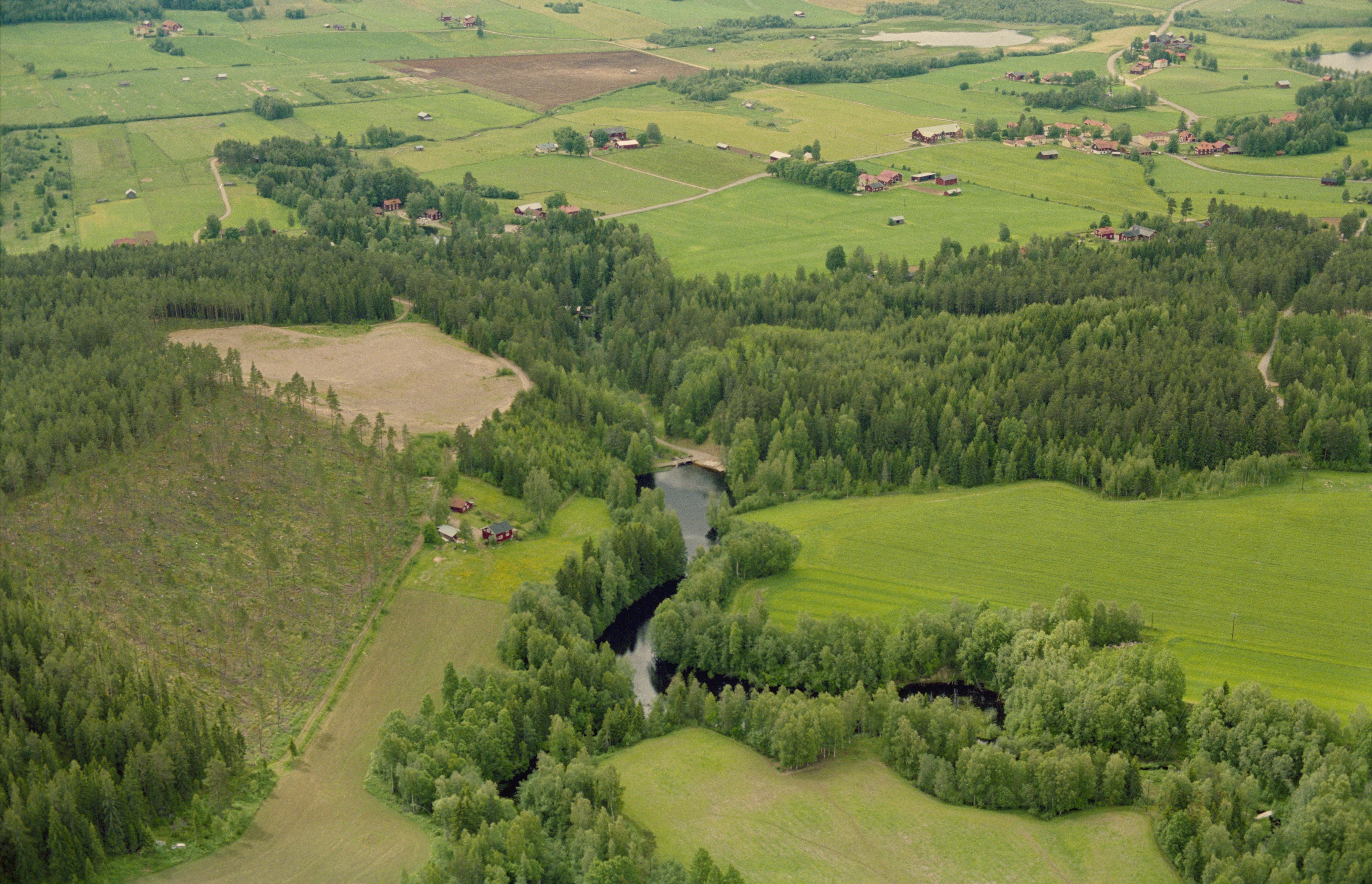 Beskrivning: Växbo by, nordöstra delen. Vid bildens mitt Trolldalen RAÄnr Bollnäs 417:1 i Vaxboåns dalgång. Över bildens mitt områdena Sörom och Växbo kvarn. Bilden är tagen mot (väderstreck): SSV