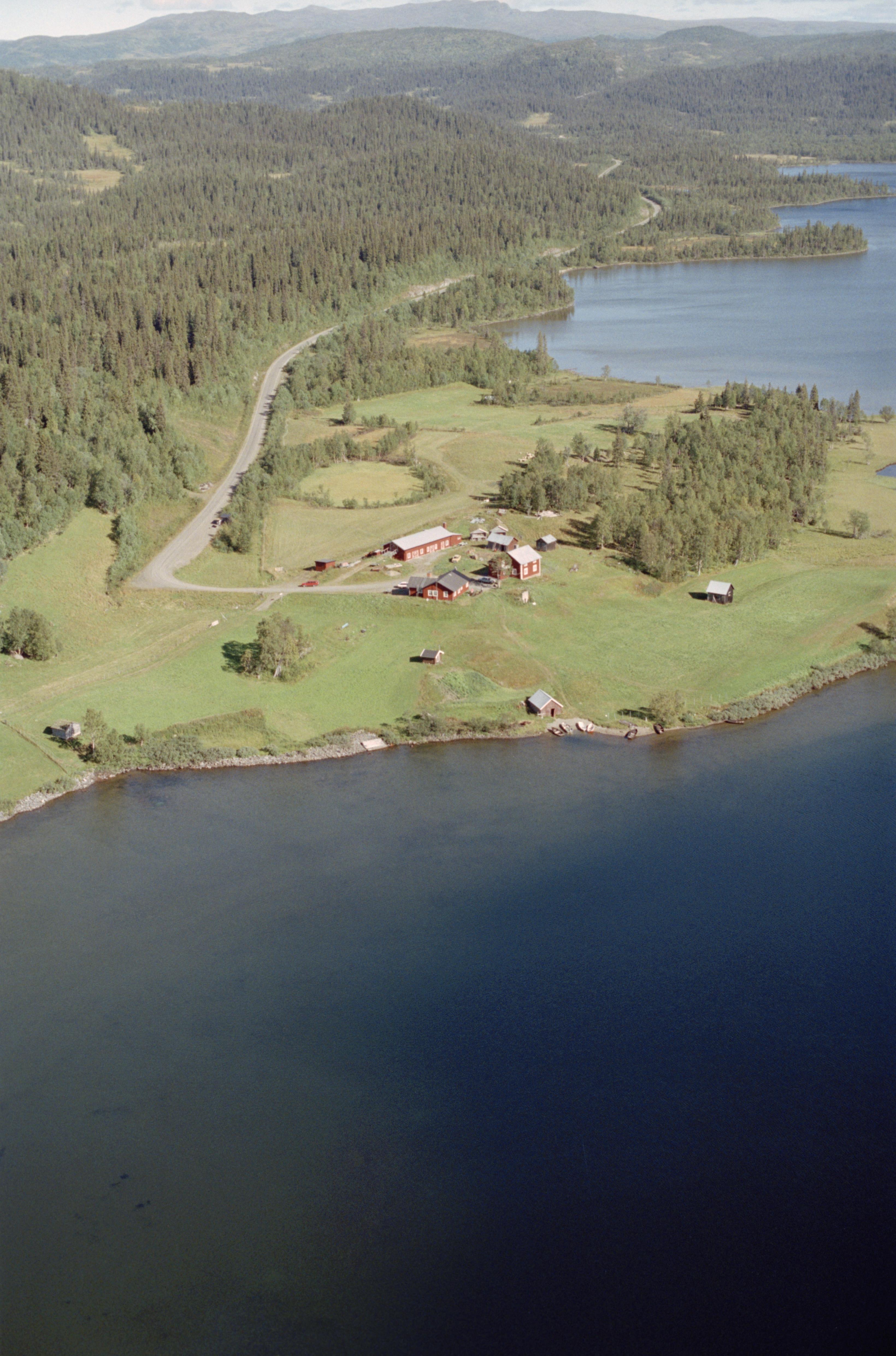 Beskrivning: Sjön Leipikvattnet, sydvästra delen. Bjurälvens naturreservat. Vid bildens mitt Leipikvattnets gård. Bilden är tagen mot (väderstreck): NO