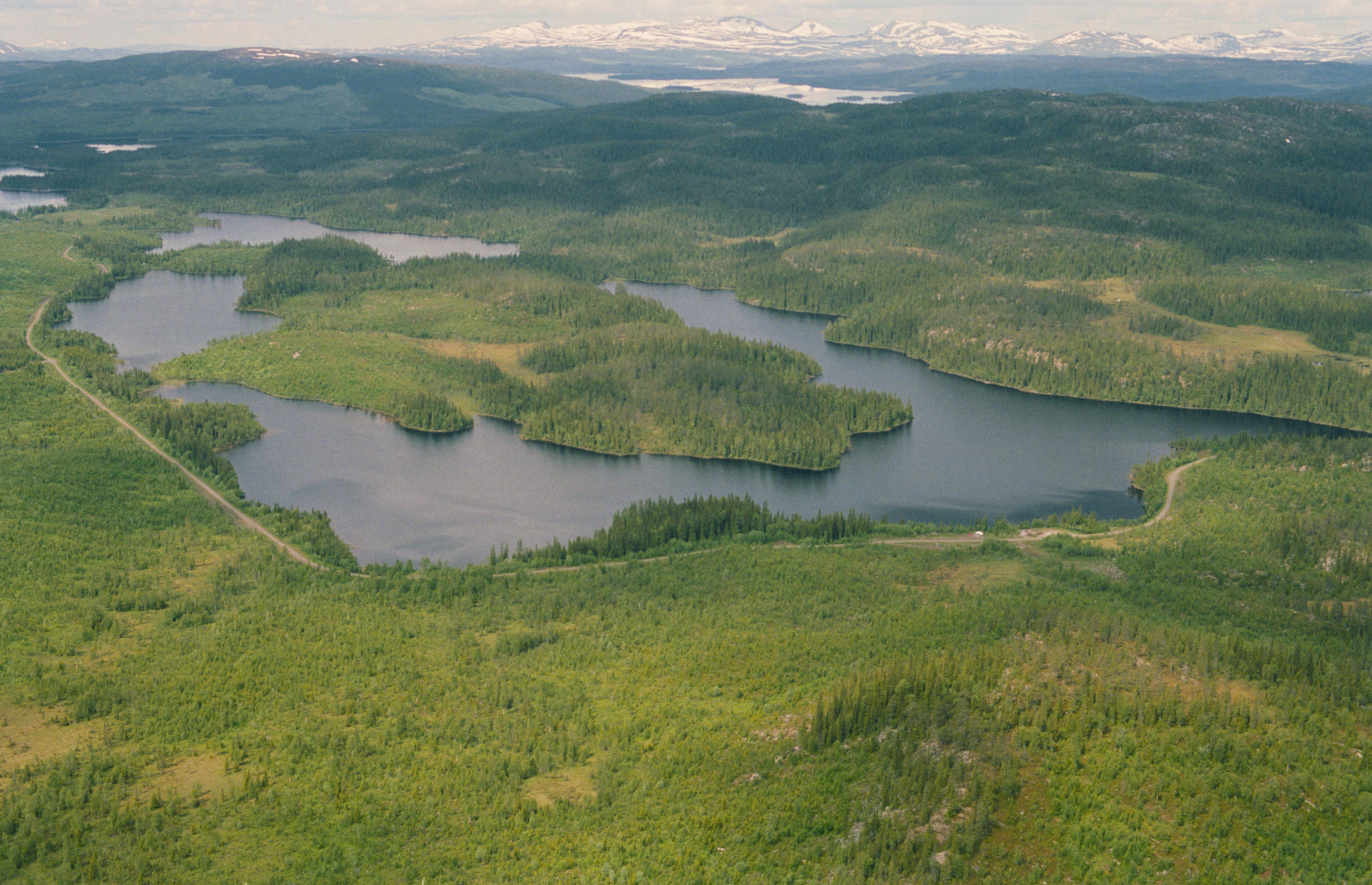 Beskrivning: Hästskotjärn (skrivs även Hästskotjärnen). Till höger om bildens mitt en klippa med hällmålningar RAÄnr Kall 70:1-5 vid Kruseberget och sjöns norra strand. Bilden är tagen mot (väderstreck): VNV