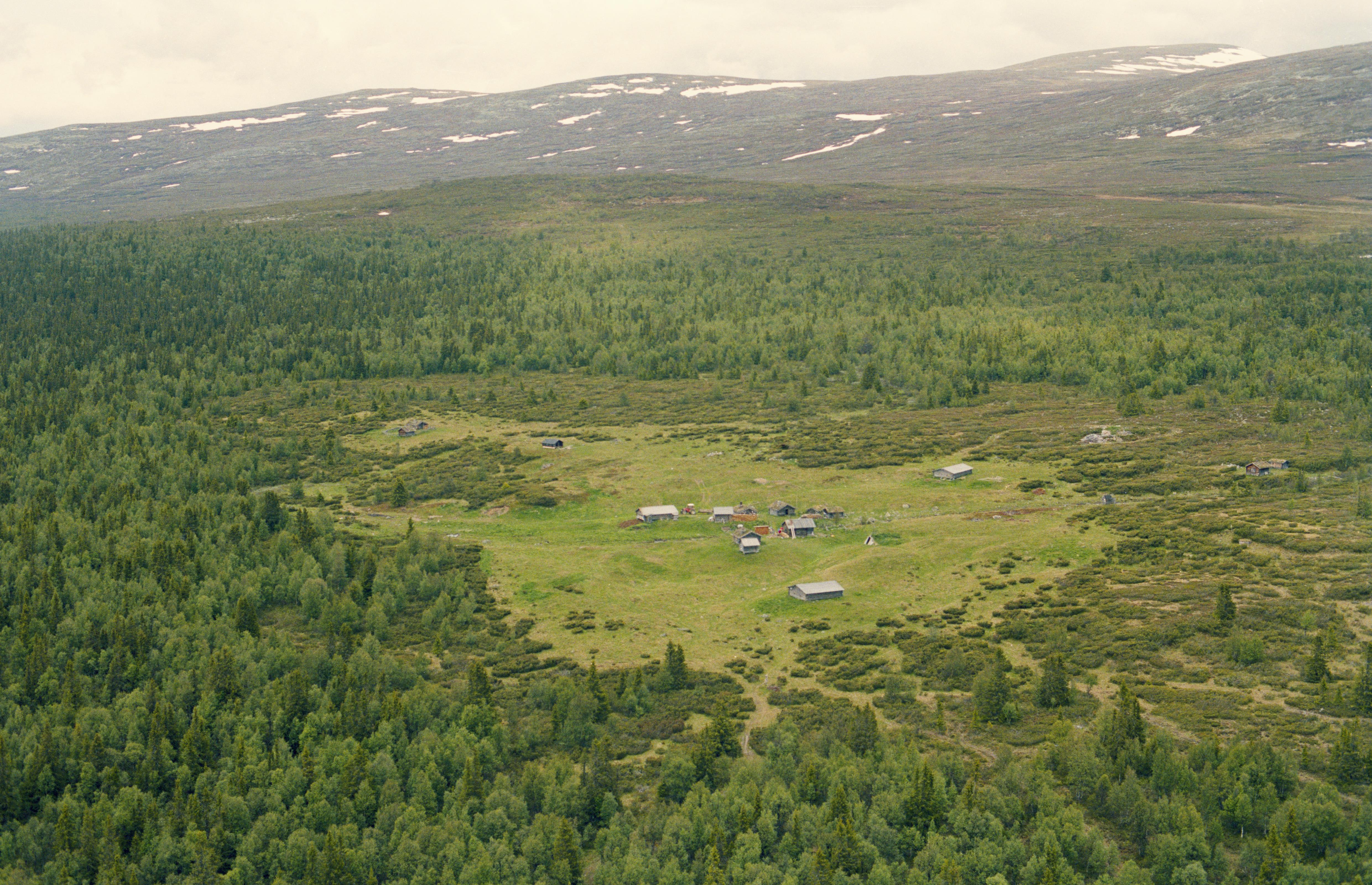 Beskrivning: Fäbodområdet Öster-Arådalen (skrivs även Östra Arådalen) i Ovikfjällens fäbodområde och Arådalens naturreservat. Bilden är tagen mot (väderstreck): NNO